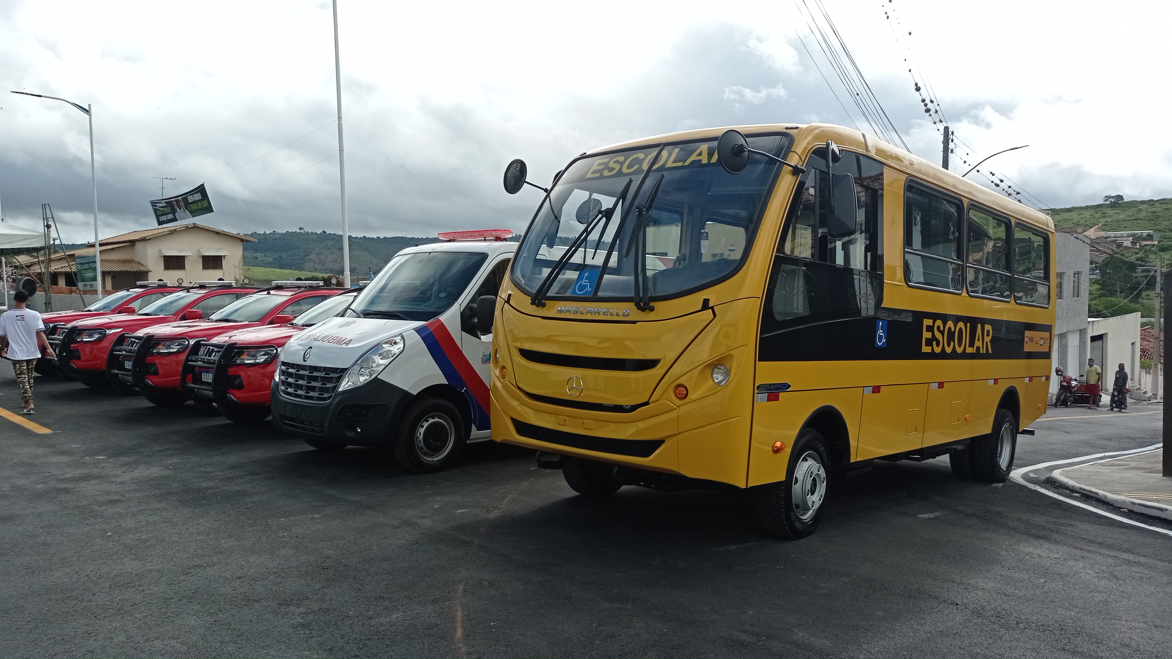 Outra entrega feita pelo governador foi de um ônibus escolar e quatro viaturas do Corpo de Bombeiros. “Nós compramos 600 ônibus escolares e todos os municípios serão contemplados. A partir de hoje, a gente começa a entrega desses ônibus. Assim que chegar um número maior, dentro de duas semanas, faremos um ato de entrega de pelo menos 50 unidades. Vamos também seguir entregando ambulâncias para melhorar a saúde da população”, garantiu Rui Costa.