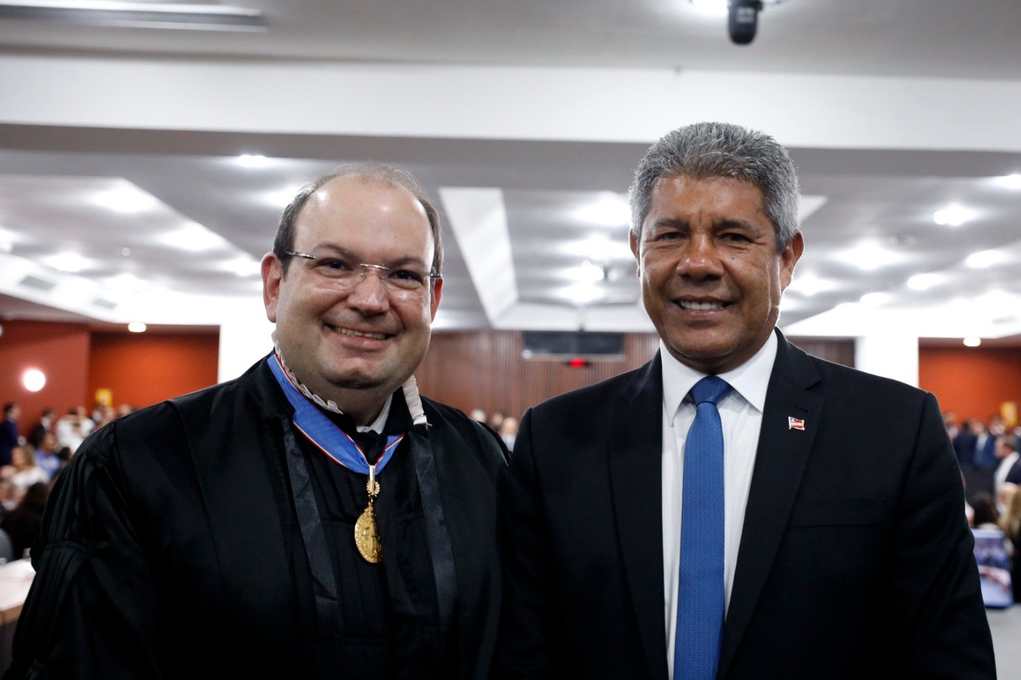 O vice governador Geraldo Júnior, os secretários do Meio Ambiente, Eduardo Sodré, da Fazenda, Manoel Vitório, da Justiça e Direitos Humanos, Felipe Freitas, e de Administração Penitenciária e Ressocialização, José Antônio Maia Gonçalves também prestigiaram o evento. O ministro Humberto Martins, presidente do Superior Tribunal de Justiça (STJ), a presidente do Tribunal de Justiça da Bahia, desembargadora Cynthia Resende e do presidente do Conselho Nacional de Justiça (CNJ), ministro Luiz Felipe Salomão estiveram presentes à solenidade.