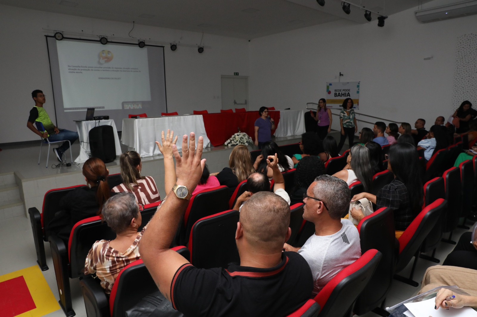 O encontro foi dividido em três ambientes - biblioteca, teatro e sala de aula -, direcionados para tratar do Programa Formação pela Escola (FPE); Programa Dinheiro Direto na Escola (PDDE); e Sistema de Avaliação Baiano de Educação (Sabe). Durante as atividades, os participantes discutiram sobre os programas, participaram do quiz interativo do PDDE e FPE, da conversa sobre os resultados do Sabe 2023 e trocaram experiências educacionais vividas em cada município.