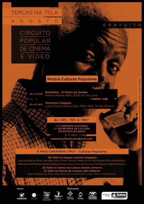 Para o mês de agosto, o Circuito Popular de Cinema e Vídeo (CPCV) preparou uma programação legitimamente brasileira. A Mostra “Culturas Populares” apresenta dois movimentos culturais que marcam a formação identitária do Brasil, principalmente, a do nordeste do país: o samba e o cangaço. No mês de agosto, os Espaços Culturais da Secretaria de Cultura do Estado da Bahia da capital e interior exibem, gratuitamente, os filmes “Batatinha – O Poeta do Samba”, de Marcelo Rabelo, e “Feminino Cangaço”, de Lucas Viana e Manoel Neto, tendo como novidade o debate com os realizadores e convidados. “Batatinha – O Poeta do Samba” chega às telas dos espaços nos dias 06 e 13 de agosto. O filme dirigido por Marcelo Rabelo retrata a vida do baiano Oscar da Penha – Batatinha – um dos mais importantes sambistas do Brasil, através da perspectiva de seus nove filhos. Através das memórias do pai, reunindo fragmentos, investigando sua vida, história e obra, é revelado um homem simples, compositor de um samba lamento carregado de poesia, cheio de facetas românticas, satíricas e que resgatava a alma popular do povo baiano. O longa já participou de diversos festivais de cinema por todo o Brasil, conquistando prêmios como Melhor Longa Metragem segundo o júri popular, no “V Panorama Internacional Coisa de Cinema”, em Salvador, e Melhor Produção Cultural Cinematográfica, na “14ª Mostra Internacional do Filme Etnográfico”, no Rio de Janeiro. No Espaço Cultural Alagados, na exibição do dia 06.08, o diretor do longa se junta a Artur Batata, filho de Batatinha, para um bate papo com o público, seguido de Samba de Roda com as atrações Mulheres Ativas do Bairro do UruguaiGruconRuy da CuícaAluan DamascenoAdjair Damasceno. Já na Casa da Música, além da exibição de “Batatinha – O Poeta do Samba” no dia 06, o espaço também exibirá o filme na segunda-feira, dia 05, em um evento especial em comemoração ao aniversário do sambista. Participam o diretor Marcelo Rabelo e os músicos Antônio Carlos Galo, Jorge Batatinha e Gabriel Penha, filhos e neto de Batatinha. Continuando com a mostra, nos dias 20 e 27 de agosto será exibido o documentário “Feminino Cangaço” nos espaços culturais da SecultBA. Dirigido por Lucas Viana e Manoel Neto, o filme propõe uma reflexão crítica sobre a entrada das mulheres no cangaço, suas motivações, o papel dentro dos bandos, as superstições em torno delas, costumes, crenças e dramas pessoais. Trata-se de melhor compreender a importância das mulheres na construção do que hoje se entende como o fenômeno do cangaço, as destacando como sujeitos ativos desta história. Mulheres que transgrediram os valores sociais de sua época e cuja força surpreende ainda nos dias atuais. No documentário estão presentes entrevistas com especialistas sobre a temática do cangaço, a exemplo do sócio fundador da União Nacional de Estudos Históricos e Sociais (Unehs), Antonio Amaury, e os pesquisadores Frederico Pernambucano de Melo, Luiz Ruben, Rosa Bezerra e Germana Gonçalves. Também estão presentes os depoimentos da filha e neta de Lampião e Maria Bonita, Dona Expedita e Vera Ferreira. O bate-papo com os diretores Lucas Viana e Manoel Neto, acontece nos Centros de Cultura Amélio Amorim (Feira de Santana) no dia 20, e João Gilberto (Juazeiro), no 27, após a exibição do filme. SERVIÇO