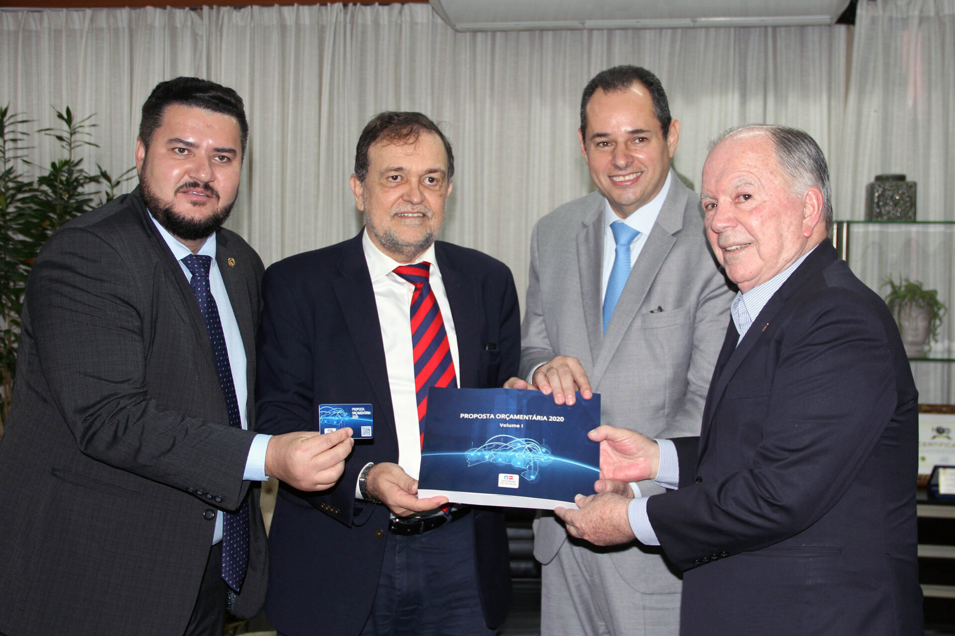 O projeto de Lei Orçamentária Anual (PLOA) da Bahia para 2020 prevê um aumento de 4,6% em relação ao orçamento deste ano. O documento foi entregue nesta segunda-feira (30) pelo secretário estadual do Planejamento, Walter Pinheiro, ao presidente da Assembleia Legislativa, Nelson Leal, na presença do vice-governador, João Leão. A proposta orçamentária fixa as despesas para 2020 em R$ 49,2 bilhões, enquanto o valor para 2019 foi de R$ 47,1 bilhões.