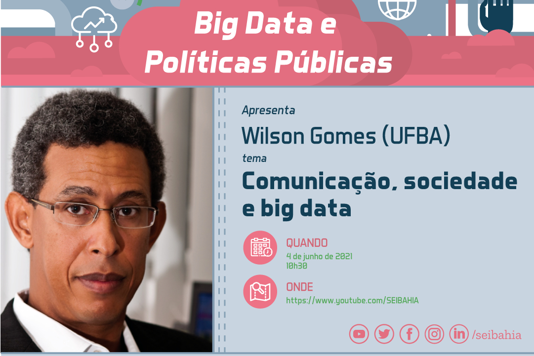 A Superintendência de Estudos Econômicos e Sociais da Bahia (SEI), autarquia vinculada à Secretaria do Planejamento, recebe na próxima sexta-feira (4) o professor Wilson Gomes, da Universidade Federal da Bahia (UFBA) para falar sobre o tema Comunicação, Sociedade e Big Data no evento on-line de lançamento da revista Bahia Análise & Dados cujo tema é Big Data e Políticas Públicas.