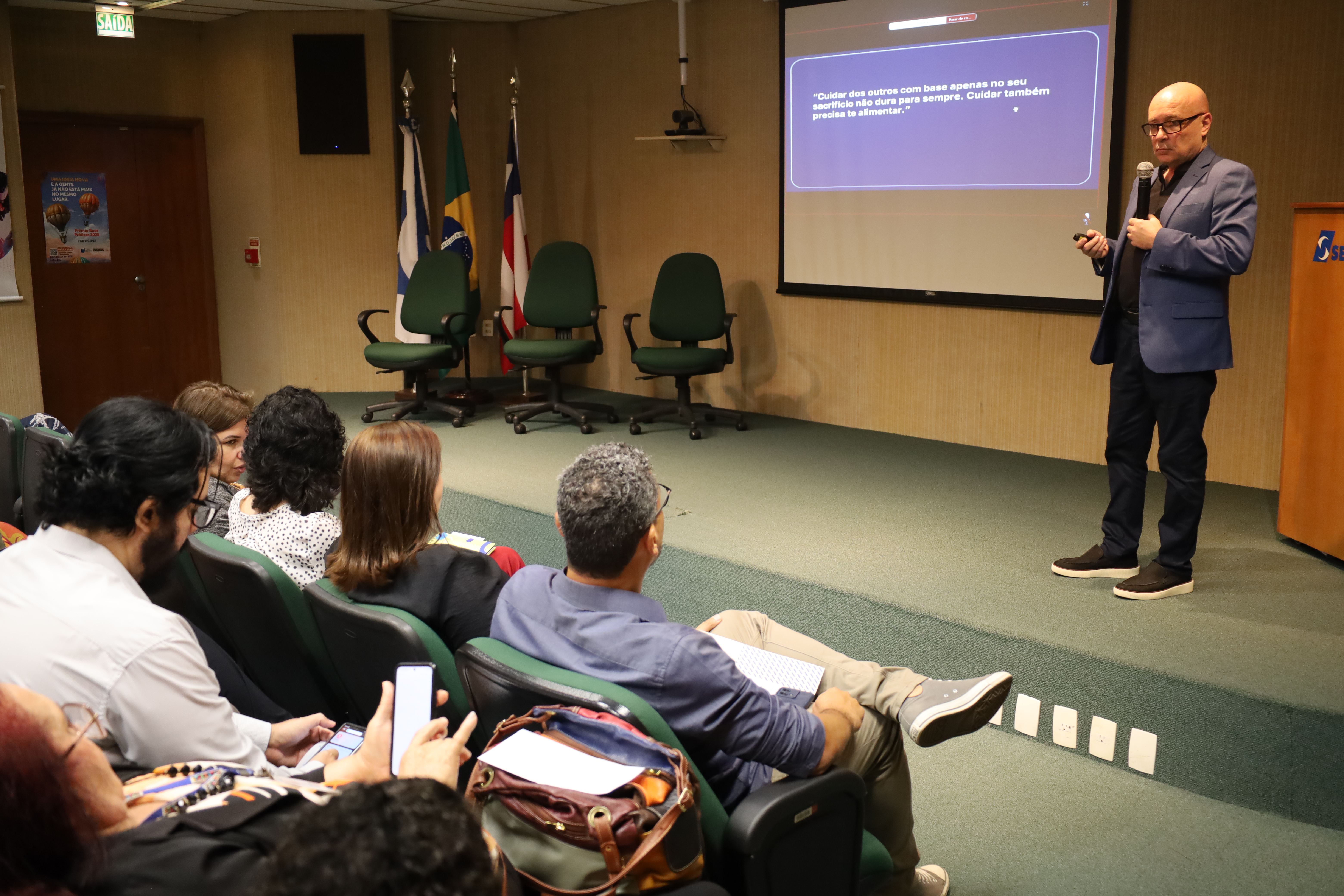 O Brasil ocupa a segunda posição no ranking mundial de casos de síndrome de burnout e o primeiro em transtornos de ansiedade. Nos últimos anos, as estatísticas vêm demonstrando um crescimento significativo no número de afastamentos do trabalho ocasionados por transtornos mentais. Mas, o que dizer da saúde mental daqueles profissionais que atuam em prol do bem-estar de outros profissionais? O tema esteve no centro das discussões da primeira edição do projeto “Café com RH: cuidar de quem cuida”, promovido na manhã desta terça (22.07), no auditório da empresa Serpro, na Av. Paralela, em Salvador.