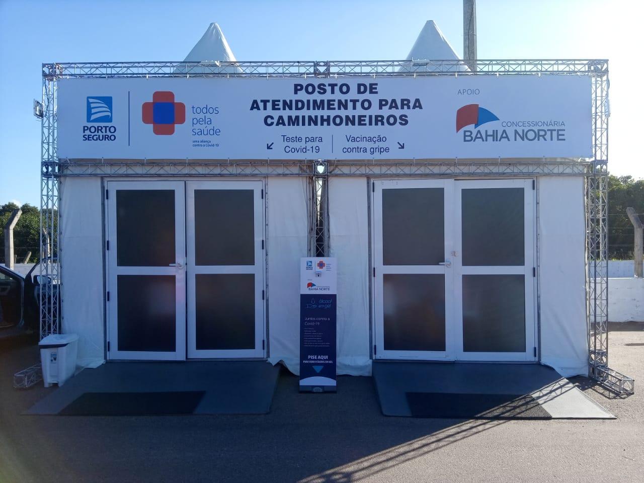 Mantendo seu compromisso em apoiar o trabalho dos motoristas de caminhão, que exercem funções essenciais à população, a Concessionária Bahia Norte deu continuidade às iniciativas que teve desde o mês de março no combate à pandemia. A ação Todos pela Saúde foi uma iniciativa do Itaú Unibanco, que junto com a Porto Seguro se uniram em parceria com a Bahia Norte para a realização de testagens gratuitas para o diagnóstico do novo coronavírus (Covid-19) — dos tipos sorológico e PCR, além da aplicação de vacinas contra a gripe influenza (H1N1).
