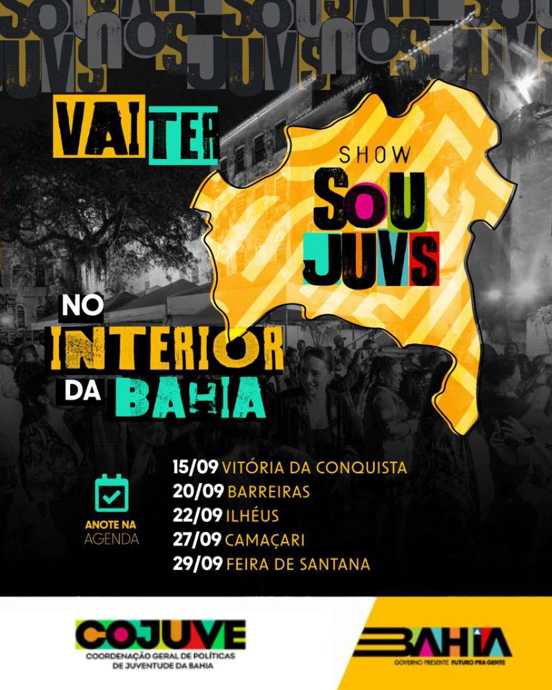 Recentemente, a Coordenação Geral de Políticas Públicas de Juventude (COJUVE), realizou o primeiro Festival SouJus na Arena Fonte Nova, em Salvador, contando com a participação de vários artistas baianos, no dia 17 de agosto (sábado), e a confirmação da programação em cidades do interior do estado, a exemplo de Feira de Santana, Vitória da Conquista, Barreiras, Ilhéus e Camaçari.