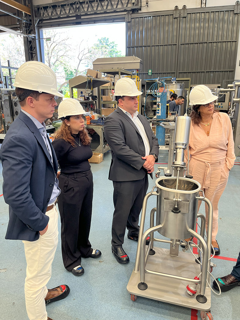Na cidade de Tigre, localizada na região metropolitana de Buenos Aires, Ceuci Nunes visitou a COMASA, empresa do PAT Group, conglomerado fabril argentino voltado à produção de equipamentos para indústrias farmacêuticas, alimentícias, veterinárias e afins. Durante a visita, a presidente conheceu as instalações da empresa e observou o início da fabricação dos equipamentos que serão utilizados na produção de sólidos orais na Bahiafarma. O diretor operacional, Pedro Rebouças, e a assessora técnica, Rafaelle Motta, também participaram desse momento.