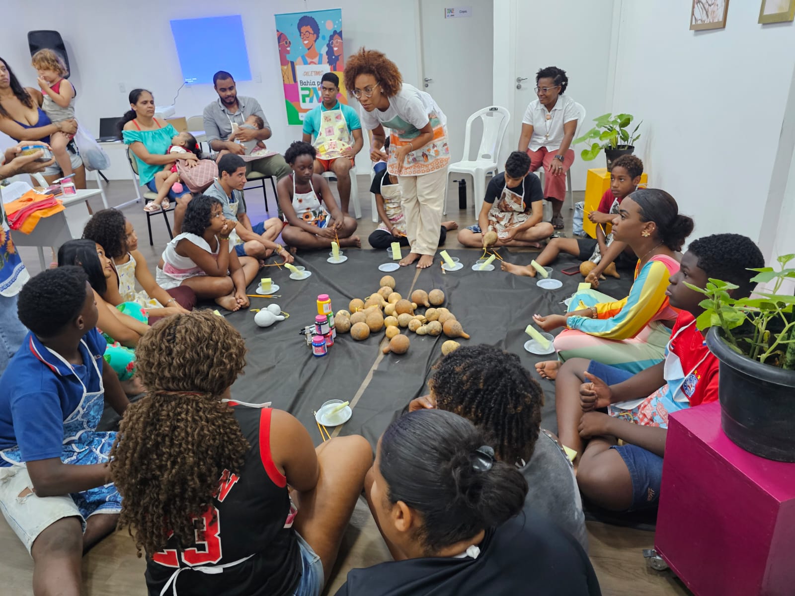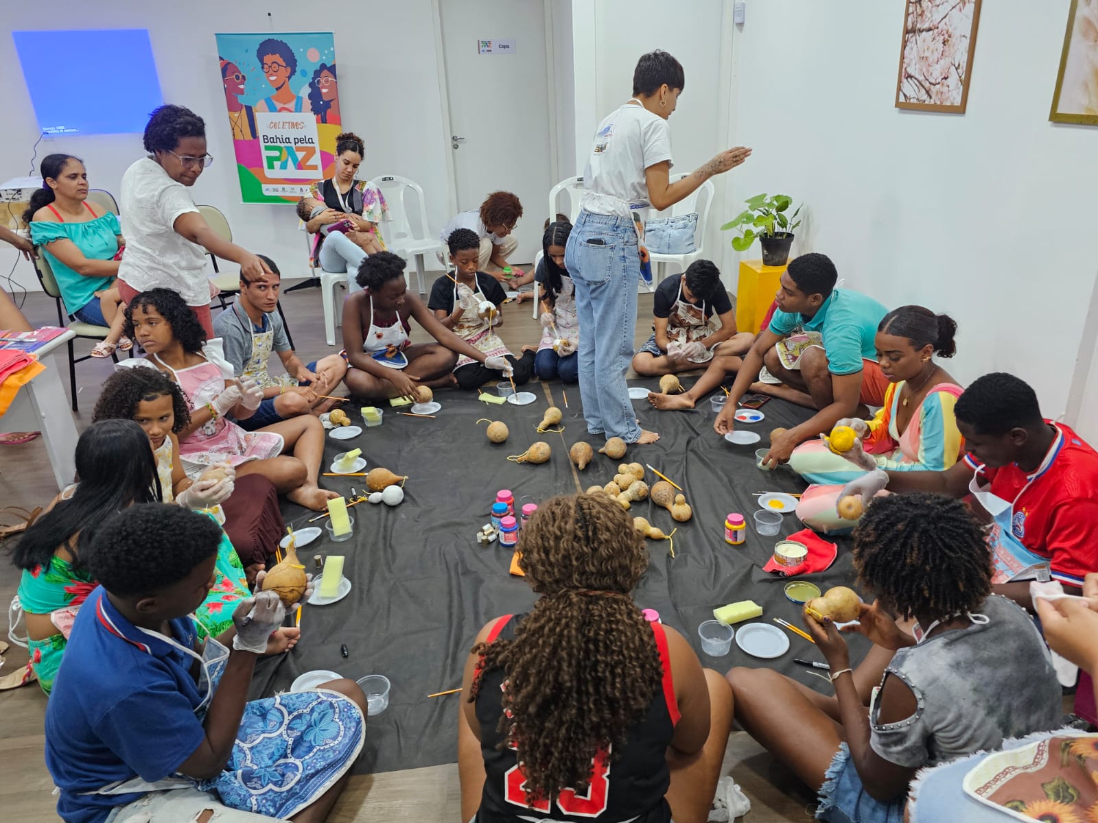 O jovem Pablo Matos, 22, participou, nesta segunda-feira (14), da Oficina de Pintura de Cabaças, realizada na sede do Coletivo Bahia Pela Paz Águas Claras, em Salvador. Enquanto pintava as frutas previamente preparadas para a atividade, Pablo lembrou-se da infância, de suas origens e sentiu uma “tranquilidade incomum” em meio às demandas do cotidiano.