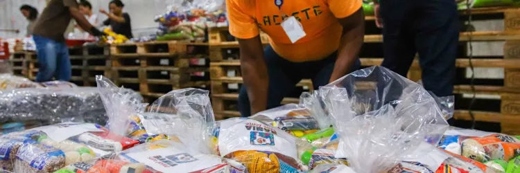 Voluntários montam cestas alimentares para o Bahia Sem Fome