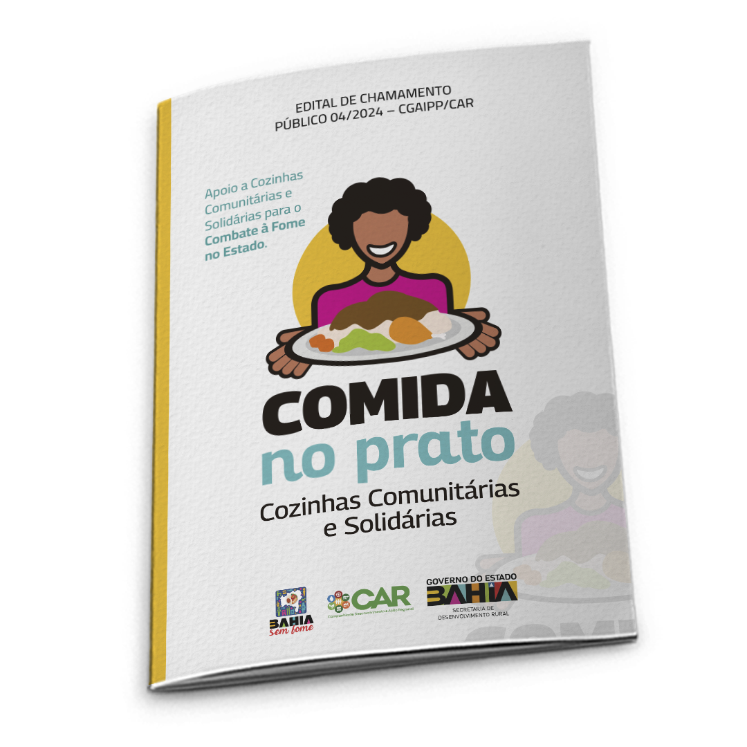 O Estado da Bahia, através da Companhia de Desenvolvimento e Ação Regional – (CAR), Empresa Pública da Secretaria Estadual de Desenvolvimento Rural (SDR), em parceria com a Coordenação Geral de Ações Estratégicas de Combate à Fome (CGCFOME), vinculada à Casa Civil do Estado da Bahia, torna público o presente Edital de chamamento público, visando à seleção de Organizações da Sociedade Civil (OSC) interessadas em celebrar Termo de Colaboração com o Estado, cujo objeto é o apoio às Cozinhas Comunitárias e Solidárias para o Fortalecimento da Rede de Equipamentos Integrados para o Combate à Fome no Estado da Bahia, no âmbito do Programa Bahia Sem Fome.