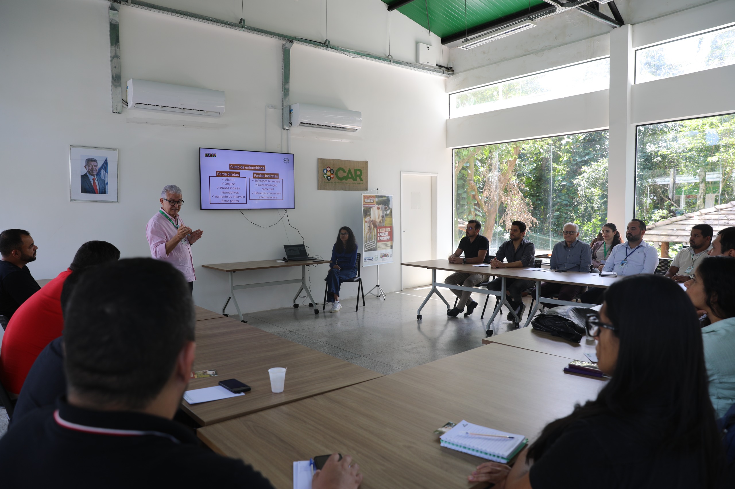 Foi realizado nesta terça-feira (09/09), no Espaço de Convivência da Companhia de Desenvolvimento e Ação Regional (CAR), no Centro Administrativo da Bahia (CAB), em Salvador, o Seminário de Atualização sobre o Programa Nacional de Controle e Erradicação da Brucelose e Tuberculose. O encontro teve como palestrante Marcelo Sampaio, médico-veterinário, biólogo e fiscal estadual da Agência de Defesa Agropecuária da Bahia (ADAB).