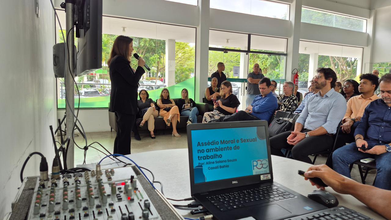 Integrando a programação da Semana da Saúde do Servidor 2025, que traz o tema “Bem-estar e Vitalidade no Ambiente Corporativo”, os colaboradores da Companhia de Desenvolvimento e Ação Regional (CAR) participaram, nesta quinta-feira (23), de uma palestra sobre “Combate ao Assédio e outras formas de Violência no Ambiente de Trabalho”, ministrada pela Procuradora do Estado da Bahia, Dra. Aline Solano.