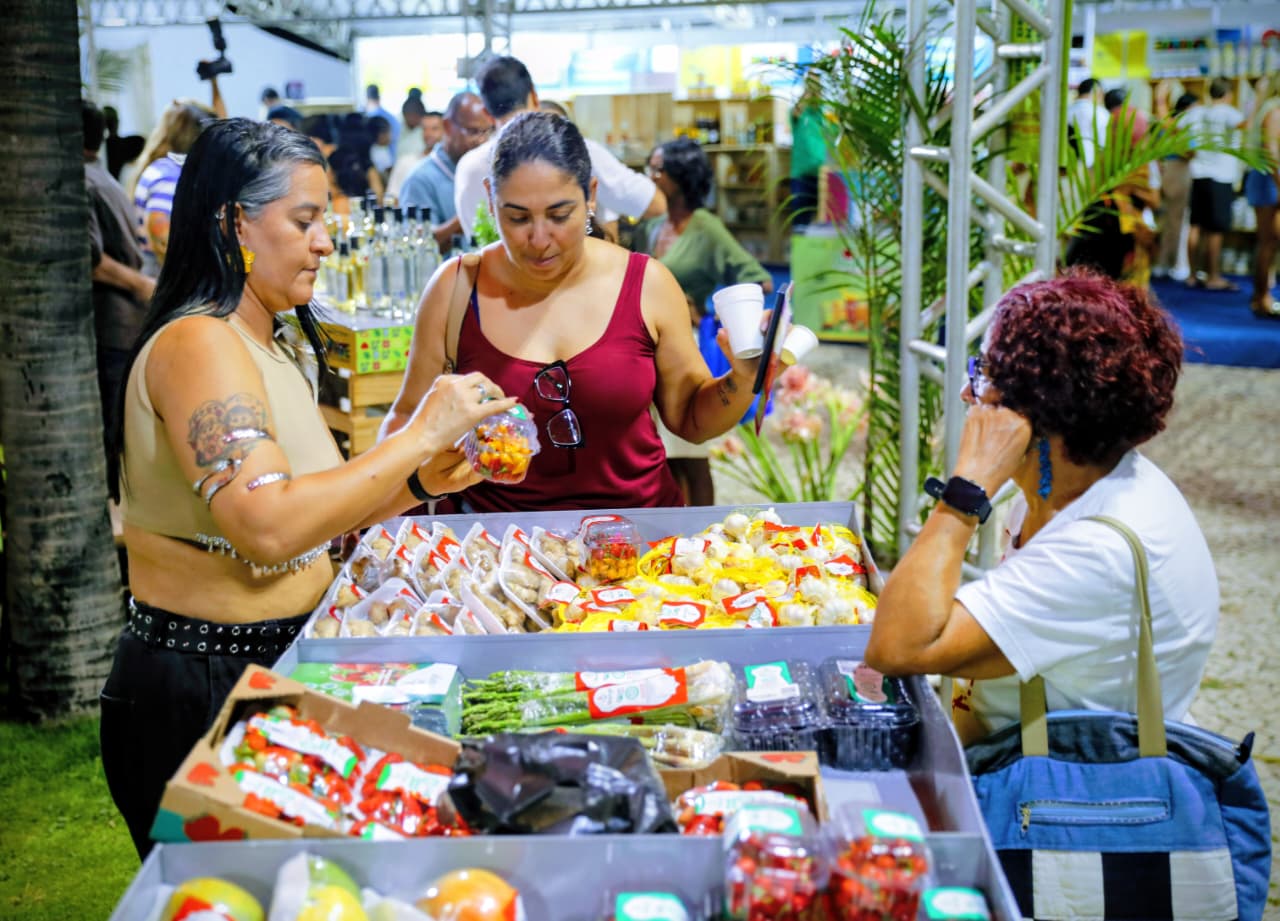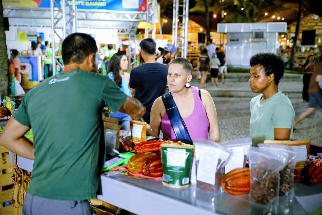 Quem circula pelo local encontra uma grande diversidade de itens cultivados nos biomas Mata Atlântica, Cerrado e Caatinga, como café, cachaça, barrinhas de fruta, extrato de tomate, chocolate e diversos produtos in natura. Organizado pela Rede de Agroecologia Povos da Mata, o espaço reúne agricultores familiares, assentados da reforma agrária, comunidades quilombolas e povos indígenas, reforçando a produção sustentável e a identidade territorial da Bahia.
