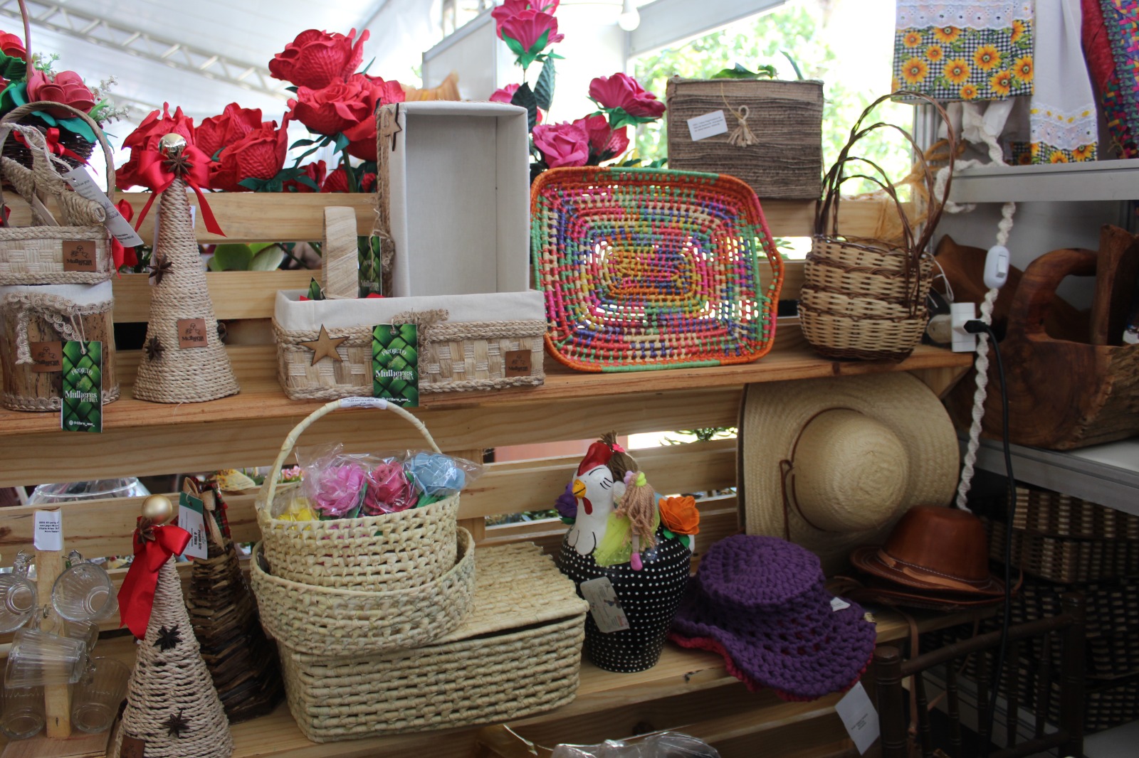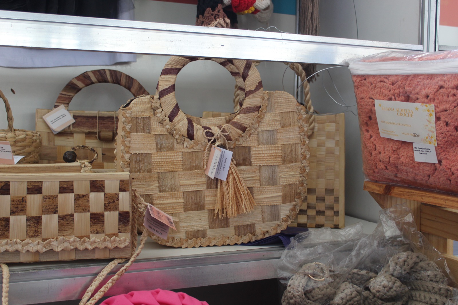 Entre os itens expostos há peças em madeira, brinquedos, artigos em couro, bolsas e utensílios feitos com palhas de licuri e banana, crochê, sabonetes e cosméticos artesanais, móveis sustentáveis produzidos com pneus reciclados e vassouras de piaçava, PET e licuri.