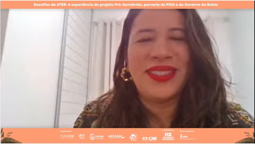 O evento, moderado pela professora Nathália Cosmo, contou também com a participação do consultor de desenvolvimento rural do Fida, Emanuel Bayle, que trouxe um panorama da atuação do Fida em relação ao Assessoramento Técnico e Extensão Rural (Ater) no Brasil. Em sua apresentação, ele expôs dados sobre a execução e o apoio a projetos de desenvolvimento rural e combate à pobreza, a exemplo do Pró-Semiárido na Bahia.
