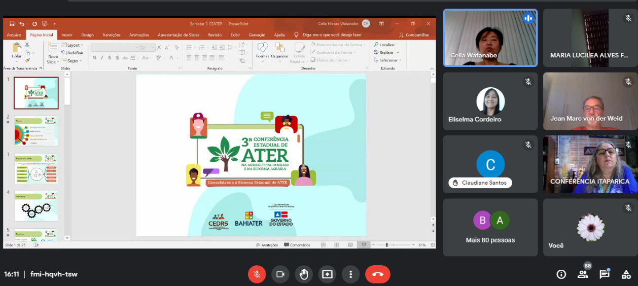 De acordo com Célia Watanabe, superintendente da Bahiater, o ciclo da 3ª Conferência Estadual de ATER está organizado para a participação mais ampla possível: “Esperamos contabilizar em torno de três mil presenças qualificadas e representativas de todos os segmentos da agricultura familiar e da gestão pública, no âmbito do desenvolvimento rural".