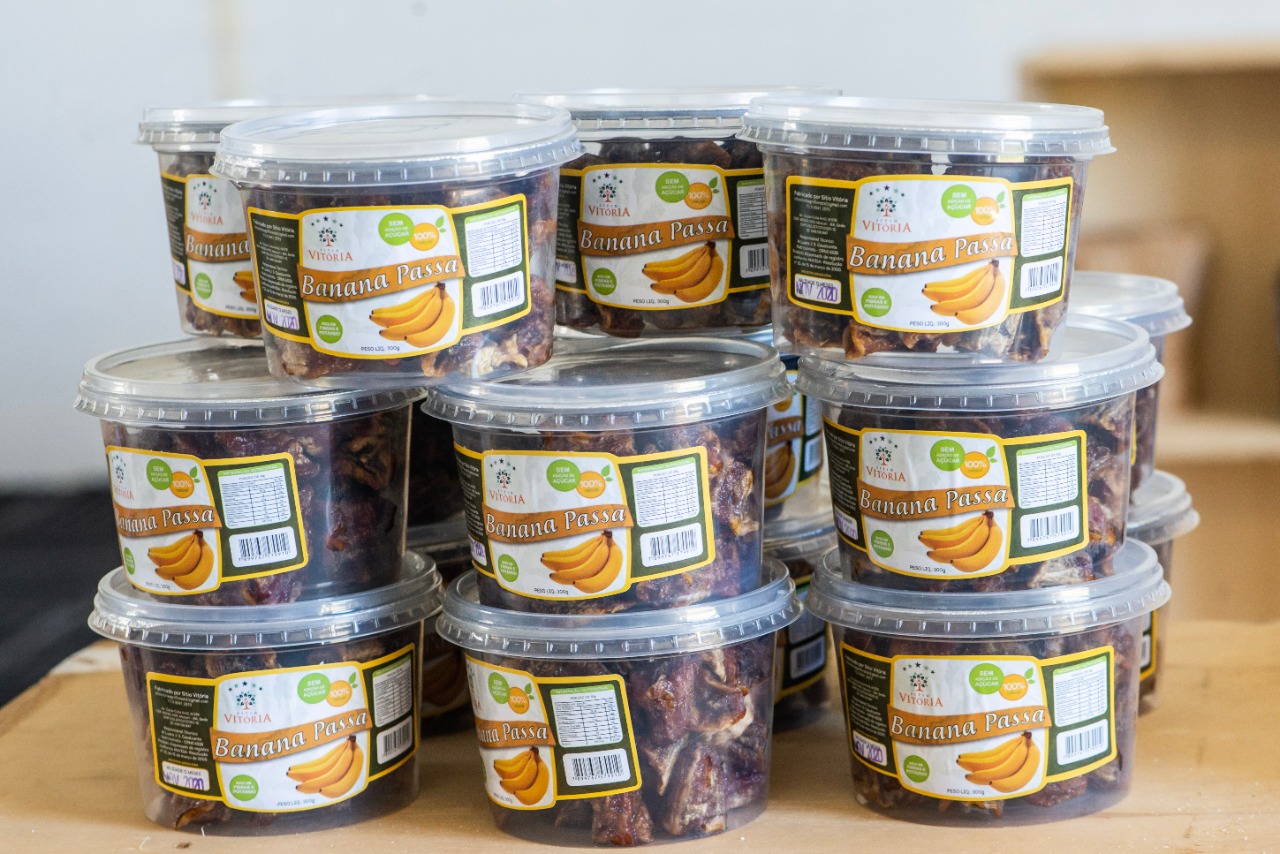 A versão desidratada da banana é 100% natural, sem adição de açúcar e rica em fibras e potássio. O produto é feito por agricultores familiares do Sítio Vitória, da Associação Jacutinga II, localizado no município de Mucuri, Território de Identidade do Baixo Sul da Bahia.
