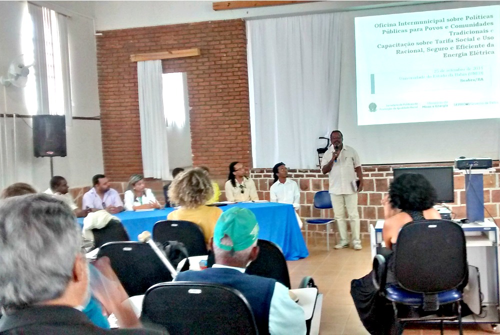 A Companhia de Desenvolvimento e Ação Regional (CAR), empresa pública vinculada à Secretaria de Desenvolvimento e Integração Regional (Sedir), participou, este mês, da Oficina Intermunicipal sobre Políticas Públicas para Comunidades e Povos Tradicionais. O evento foi realizado no Auditório da Universidade do Estado da Bahia (Uneb), no município de Seabra, Território da Chapada Diamantina, e contou ainda com uma Capacitação sobre Tarifa Social e Uso Racional, Seguro e Eficiente da Energia Elétrica.O encontro foi organizado pela Secretaria de Políticas da Promoção da Igualdade Racial da Presidência da República (SEPPIR), e Secretaria da Promoção da Igualdade Racial da Bahia (Sepromi), com participação do Conselho Estadual Quilombola e contou com a presença do coordenador do projeto Quilombolas, Antônio Fernando Silva, do gerente de Articulação e Infraestrutura da SEPPIR, Ronaldo de Oliveira, do Ministério de Minas e Energia, Sepromi, Coelba, Companhia Baiana de Pesquisa Mineral (CBPM) e Fundação Palmares, entre outras instituições.A oficina, que reuniu ainda representantes do poder público e das comunidades quilombolas dos Territórios de Identidade da Chapada Diamantina, Irecê, Velho Chico e Vitória da Conquista, possibilitou a apresentação de temas como o das políticas públicas para as comunidades quilombolas e o Sistema de Monitoramento de Políticas da Promoção da Igualdade Racial – SMPPIR, além de promover uma discussão com gestores públicos sobre essas políticas.De acordo com o coordenador do Projeto Quilombolas, é importante a participação da CAR, através do projeto Quilombolas, em eventos como esse, porque um dos objetivos do projeto é o fortalecimento das organizações quilombolas. “Essa oficina já é um resultado do protagonismo dessas comunidades, que já conseguem se articular e ter uma melhor participação nos discursos e manter um diálogo com as diversas instâncias públicas”, salientou.