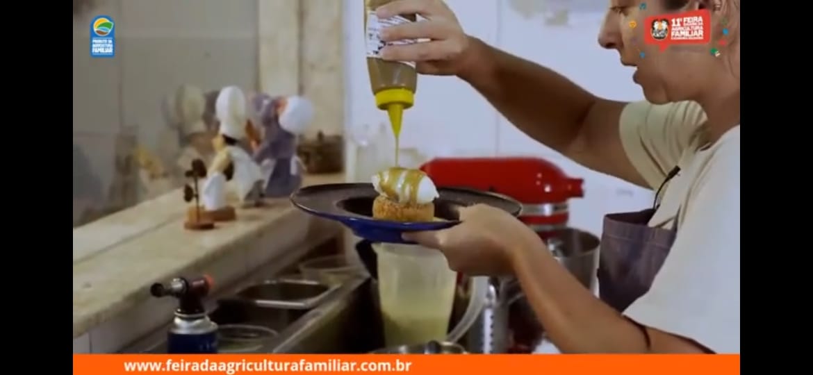 Nesta sexta-feira (11), a Cozinha Show - Sabores e Saberes da Agricultura Familiar foi comandada pela chef Lisiane Arouca, com a sua receita “Rabanada do Sertão com Creme de Umbuzada e Licuri Caramelado”. O prato leva umbu da Cooperativa Agropecuária Familiar de Canudos, Uauá e Curaçá (Coopercuc) e licuri da Cooperativa de Produção da Região do Piemonte da Diamantina (Coopes).