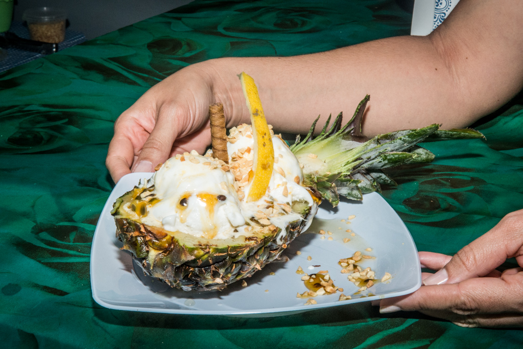 A concepção e montagem do Maracaxi Show foi idealizada da seguinte forma: Sorvete de coco e tapioca, servido no abacaxi com pedaços de abacaxi flambado e com calda de maracujá, regado com castanha e raspa de limão.