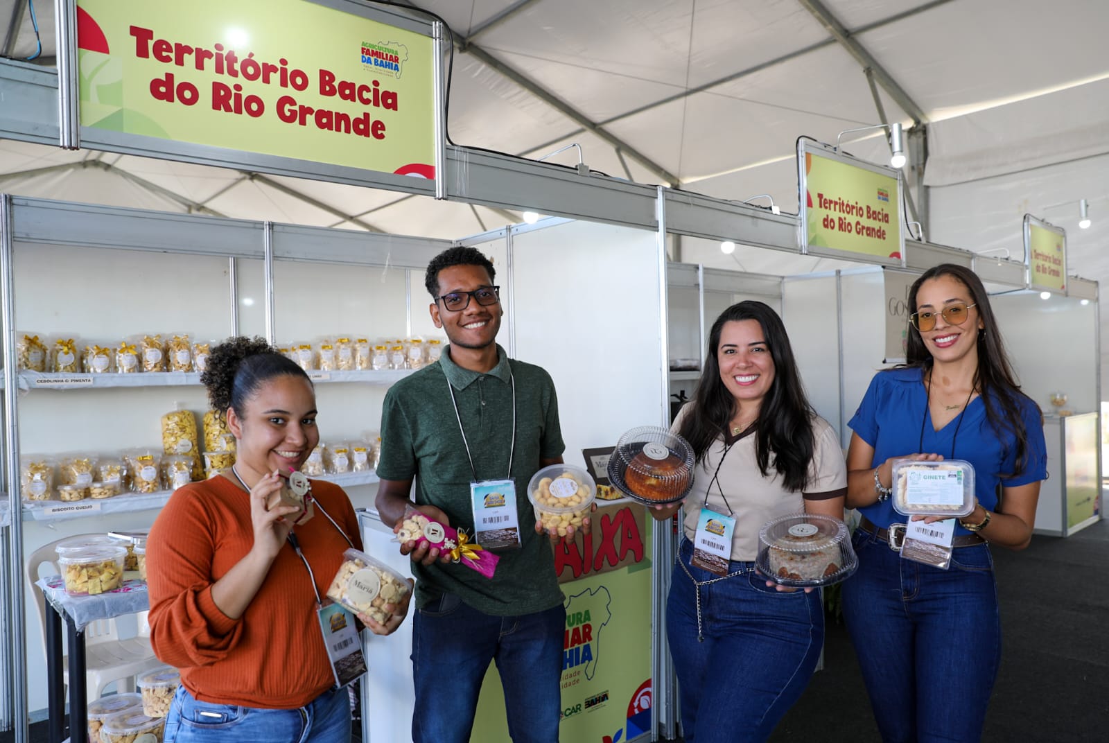 Mel, queijos, iogurtes, biscoitos, bolos, cocadas, cafés, castanhas e uma diversidade de produtos estão disponíveis para o público que visita a 18ª edição da Bahia Farm Show, maior feira de tecnologia agrícola e negócios do Norte e Nordeste do Brasil, no estande da Agricultura Familiar.