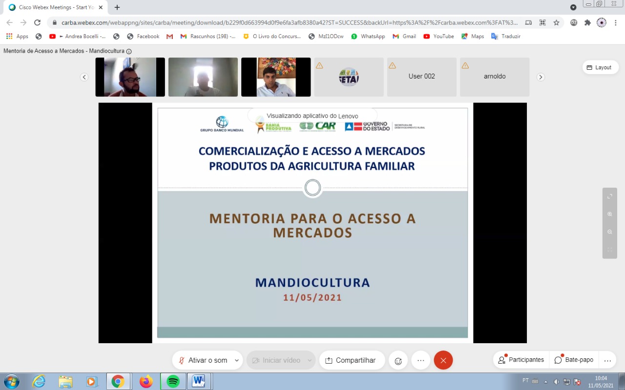 Mandiocultura - Mentoria para o Acesso a Mercados foi o tema do encontro virtual, realizado nesta terça-feira (11), pela equipe da Coordenação de Inteligência de Mercado do Projeto Bahia Produtiva, com a participação de especialistas, associações e cooperativas que atuam no sistema produtivo da mandioca. O objetivo foi, a partir da abordagem e discussão do tema, fortalecer os empreendimentos sobre orientações de mercado, com foco no sistema produtivo, para ampliar a informação e a discussão de temas relacionados à gestão e acesso ao mercado.