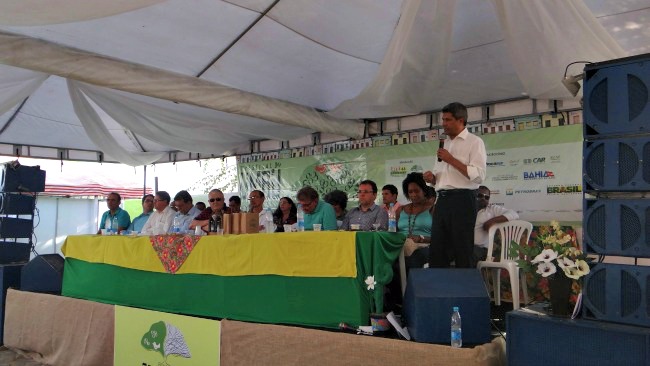 Com uma agenda de compromissos organizada, notadamente, para fortalecer e dinamizar projetos e ações voltadas para o meio rural baiano, o secretário de Desenvolvimento Rural, Jerônimo Rodrigues, representando o governador Rui Costa, participou hoje (06), às 14h, da abertura da 7ª edição do Festival do Umbu, no município de Uauá, Território do Sertão do São Francisco.Ele estava acompanhado do secretário do Meio Ambiente, Eugênio Spengler, do diretor executivo da Companhia de Desenvolvimento e Ação Regional (CAR), Wilson Dias, parlamentares, trabalhadores rurais, técnicos e lideranças da região."Hoje, dia 6, estamos fazendo uma celebração de avanços, de expansão deste festival. Tivemos esse sucesso porque esse evento faz parte de um amplo e bem elaborado projeto de Governo. É essa expansão que vamos consolidar e levar para outros municípios, fomentando o debate da agricultura familiar na Bahia", destacou o secretário.O evento, realizado pela Cooperativa Agropecuária de Canudos, Uauá e Curaçá (Coopercuc), com o apoio da Secretaria de Desenvolvimento Rural (SDR) e da Companhia de Desenvolvimento e Ação Regional (CAR), entre outras instituições, reuniu mais de 50 mil visitantes e representantes de cooperativas que mostraram seus produtos em diversos stands.Para o presidente da Coopercuc, Adilson Ribeiro, a agricultura familiar na Bahia ganhou reforço com a criação de uma secretaria ligada diretamente às questões do homem do campo. "É muito importante esse compromisso com todos nós, cooperados. Esse é um sonho realizado e é gratificante sabermos que temos pessoas do governo sensíveis à nossa causa", disse.Estiveram presentes ao evento, os superintendentes da da CAR, Jeandro Ribeiro, da Companhia Nacional de Abastecimento (CONAB), Bruno Miguel Guimarães, da SUAF, Marcelo Matos, e o delegado do MDA, Wellington Rezengal.Participaram também do encontro, Iara Andrande (UNICAFES), Cícero Félix (IRPAA), Walda Aroucha (Assessoria e Gestão em Estudos da Natureza - Agendha), técnicos da CAR de Salvador e do Escritório Regional de Juazeiro, o prefeito de Uauá, Olímpio Cardoso, o coordenador da Cooperativa Sem Fronteiras, Adriano Martins, o presidente da Câmara Municipal, Jairo Rocha, e o deputado federal, Afonso Florense, entre outras autoridades.Agroindústria e cooperativismo sem fronteirasAntes da abertura do festival, o secretário Jerônimo Rodrigues, acompanhado de cooperados, técnicos, lideranças e autoridades locais, esteve na agroindústria de beneficiamento de frutas executada pela CAR, empresa da SDR, no âmbito do programa estadual Vida Melhor, totalizando investimentos da ordem de R$ 1,4 milhão.A unidade, situada na sede de Uauá e em fase de conclusão, terá a capacidade instalada de 16 mil quilos por dia e permitirá a inclusão de 200 famílias no processo de extração e beneficiamento de frutas da caatinga, atendendo diretamente os municípios de Uauá, Curaçá e Canudos, no Território Sertão do São Francisco.O empreendimento atuará com quatro linhas de produção transformando as frutas “in natura” em doces, polpas, geleias e frutas. Com a nova unidade, a Coopercuc quer ampliar sua participação no mercado internacional.Ainda no município, o secretário esteve na sede da Coopercuc e da Cooperativa Sem Fronteiras, organização sob coordenação de Adriano Martins, que está reunindo participantes em âmbito internacional e atua para o fortalecimento das cooperativas no Brasil, trocando conhecimento e experiências em várias comunidades rurais."Espero que este fórum possa dar contribuições ao município de Uauá e que o tema do cooperativismo seja construído com a Unisol, Unicafes e todas as organizações envolvidas e que esta luta não tenha mesmo fronteiras", destacou Jerônimo Rodrigues.O secretário do Meio Ambiente ressaltou a importância de apoiar os sistemas agroflorestais e da parceria com a SDR. "As atividades que as cooperativas desenvolvem podem ser fortalecidas, considerando fatores como a economia, geração de renda, a lógica do plano de manejo e uma série de ações fundamentais".Confira as fotos no Flickr: https://www.flickr.com/photos/sdrbahia