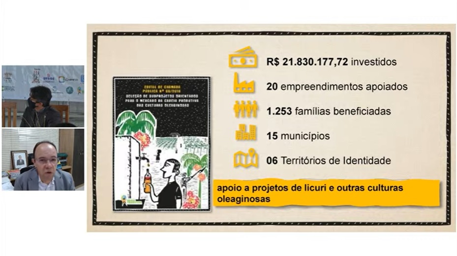 No total, o Governo do Estado apoiou com mais de R$ 5,7 milhões só nessa cooperativa, tanto na entrega de máquinas quebradeiras e despeladeiras de licuri tanto com organização para acesso a mercados dos variados produtos beneficiados da cooperativa, como o licuri salgado, sem sal e caramelizado, biscoitos, óleo, doces e artesanatos.