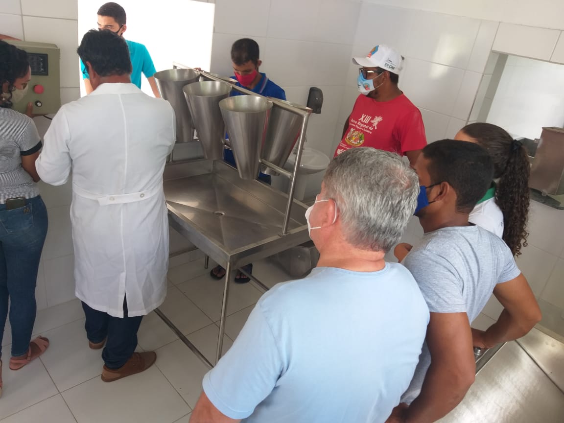 O grupo de jovens da comunidade Alto de São Gonçalo, no município de Itiúba, Território de Identidade do Sisal, participou de capacitação sobre Boas Práticas de Fabricação, com o objetivo de assegurar que os frangos caipiras, produzidos pelo abatedouro gerenciado por eles, tenham condições de receber a certificação do Serviço de Inspeção Municipal (SIM) e do e-SISBI, que é o sistema eletrônico disponibilizado para a gestão dos serviços oficiais de inspeção de produtos de origem animal, vegetal e insumos agropecuários dos estados.