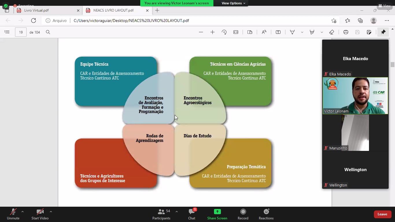 Além do Neacs, os técnicos e técnicas do projeto falaram sobre os Indicadores de Sustentabilidade em Agroecossistemas (ISA’s); Indicadores de Transição Agroecológica (ITA); Escrituração Zootécnica; Sistema on-line de lançamento de dados (Sisplandi); e Assessoria aos grupos de interesse e gestão dos convênios.