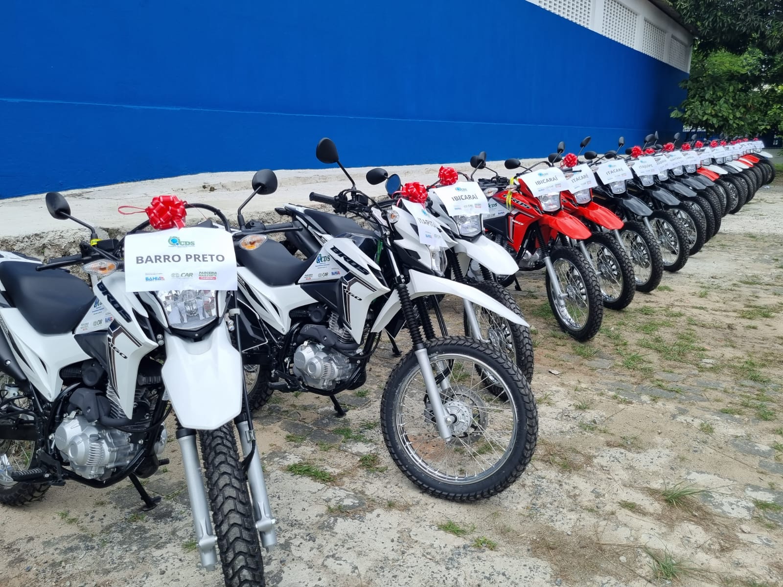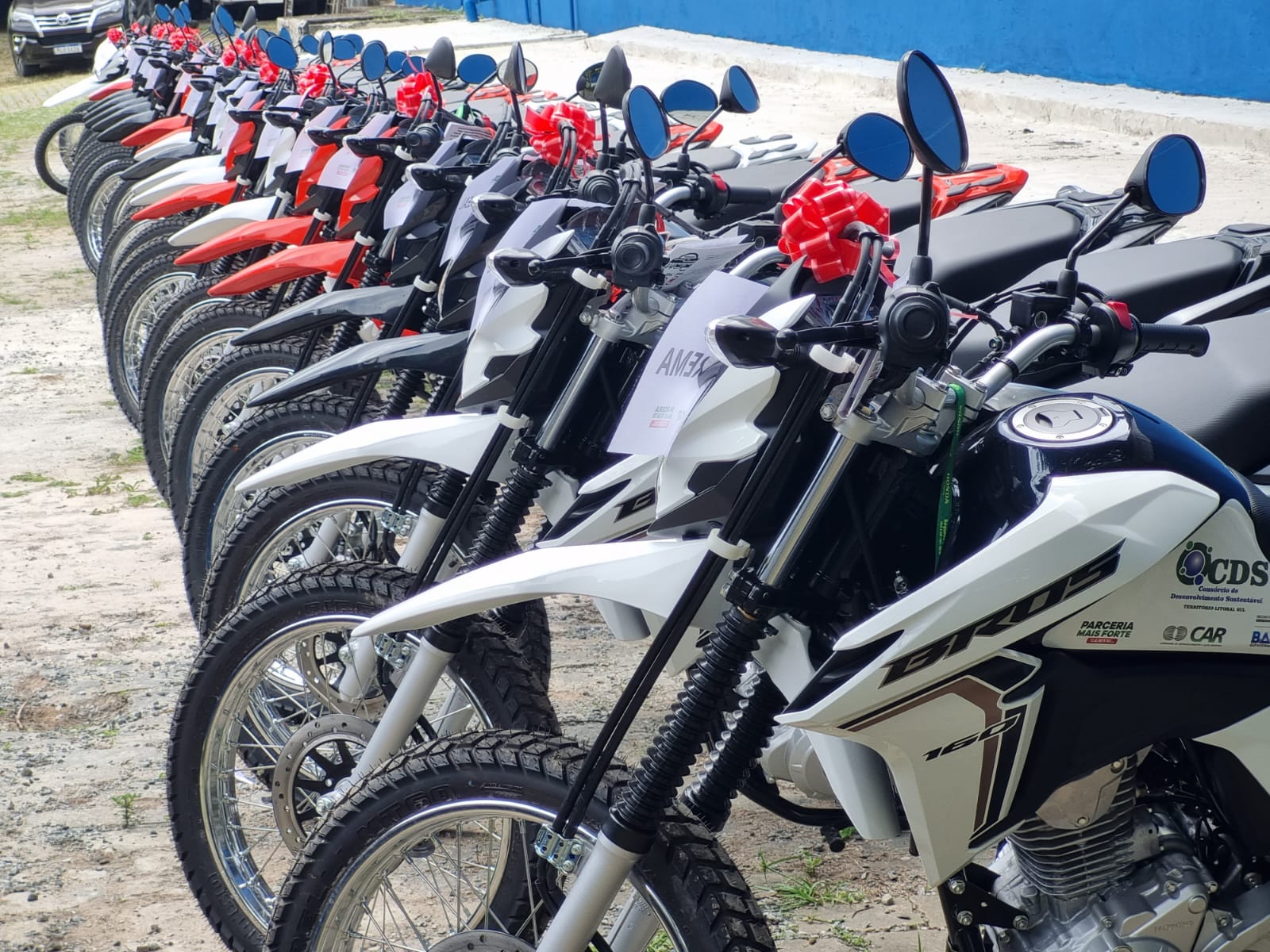 O Governo do Estado, por meio da Companhia de Desenvolvimento e Ação Regional (CAR), empresa pública vinculada à Secretaria de Desenvolvimento Rural (SDR), entregou 24 motocicletas, nesta quinta-feira (22), em Itabuna, a 16 municípios do Litoral Sul. A ação íntegra a parceria firmada entre a CAR e o Consórcio de Desenvolvimento Sustentável do Território Litoral Sul (CDS-LS), pela estratégia Parceria Mais Forte. O objetivo é promover o aumento de renda de 2.120 agricultores e agricultoras familiares de diversas comunidades rurais distribuídas nesses municípios do Território Litoral Sul, para o fortalecimento de sistemas produtivos como o do leite, do cacau, da mandioca, da apicultura e de galinhas caipiras. O evento contou com presenças de prefeitos, secretários municipais de Agricultura e outras lideranças regionais.