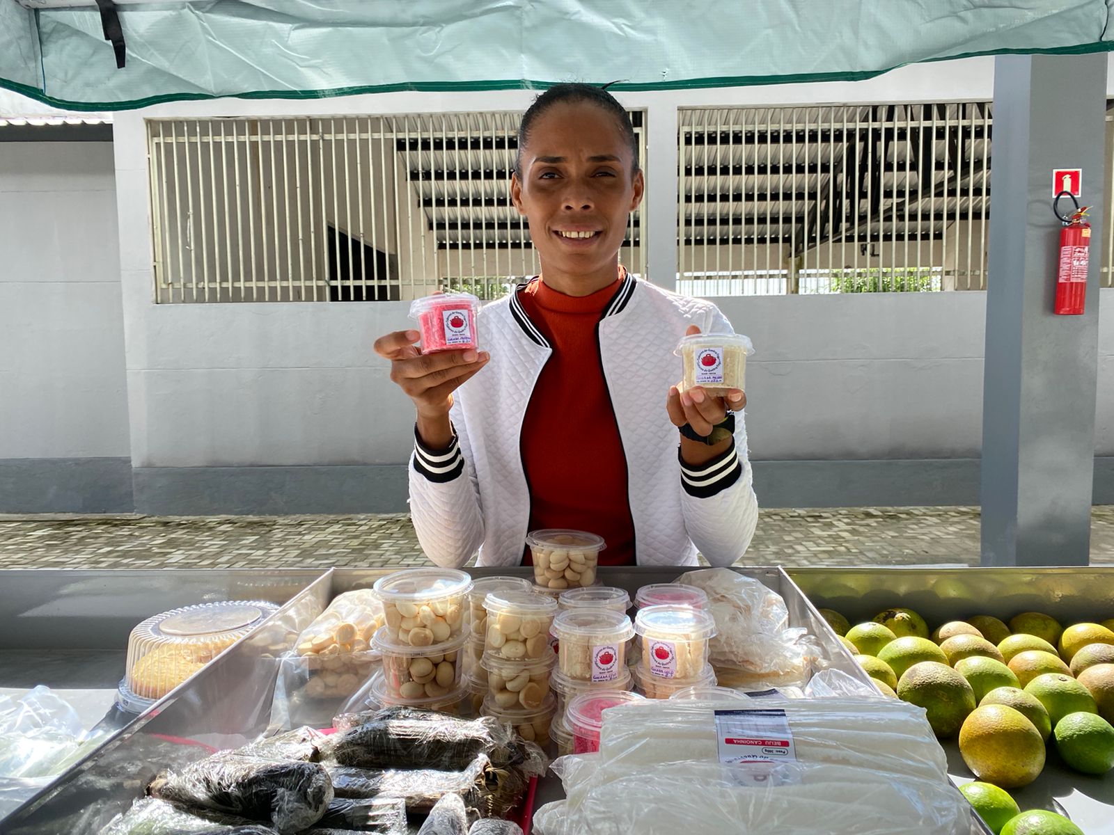 A agricultora familiar Cleidiane Gois, do grupo Sabores do Quebra Fogo, comentou os avanços na comunidade, desde a produção até a comercialização. “A gente teve o apoio do Governo do Estado com a construção da cozinha comunitária, com equipamentos como freezer e fogão, e agora vamos colocar os nossos produtos para vender aqui, como bolachas, cocadas, goma, goma fresca, beiju, pé de moleque e aipim”, comemorou.