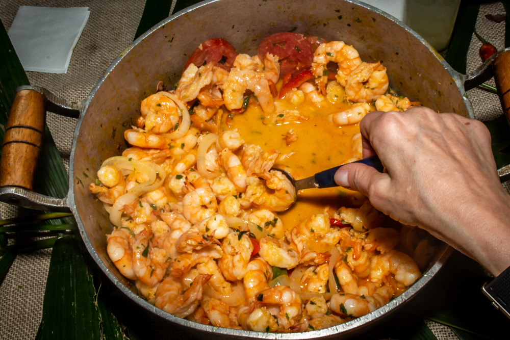 O dendê extraído de maneira artesanal no Tereré foi um dos ingredientes da moqueca de peixe e camarão, preparado pelo chef de cozinha, Fabrício Lemos, que serviu os pratos com arroz branco e farinha fresquinha, "torradinha da hora” feita no Quilombo para os visitantes: “Nossa missão é pegar os ingredientes simples e deixar que toda essência dele não se perca e vá até o final. O objetivo é aproximar os agricultores familiares do consumidor final, a gente fala de onde vem o produto, indica onde encontrar e qual cooperativa beneficiou. As pessoas vêm pulando fases, e o artesanal, que tem todo esse sabor, fica esquecido ", sinalizou.