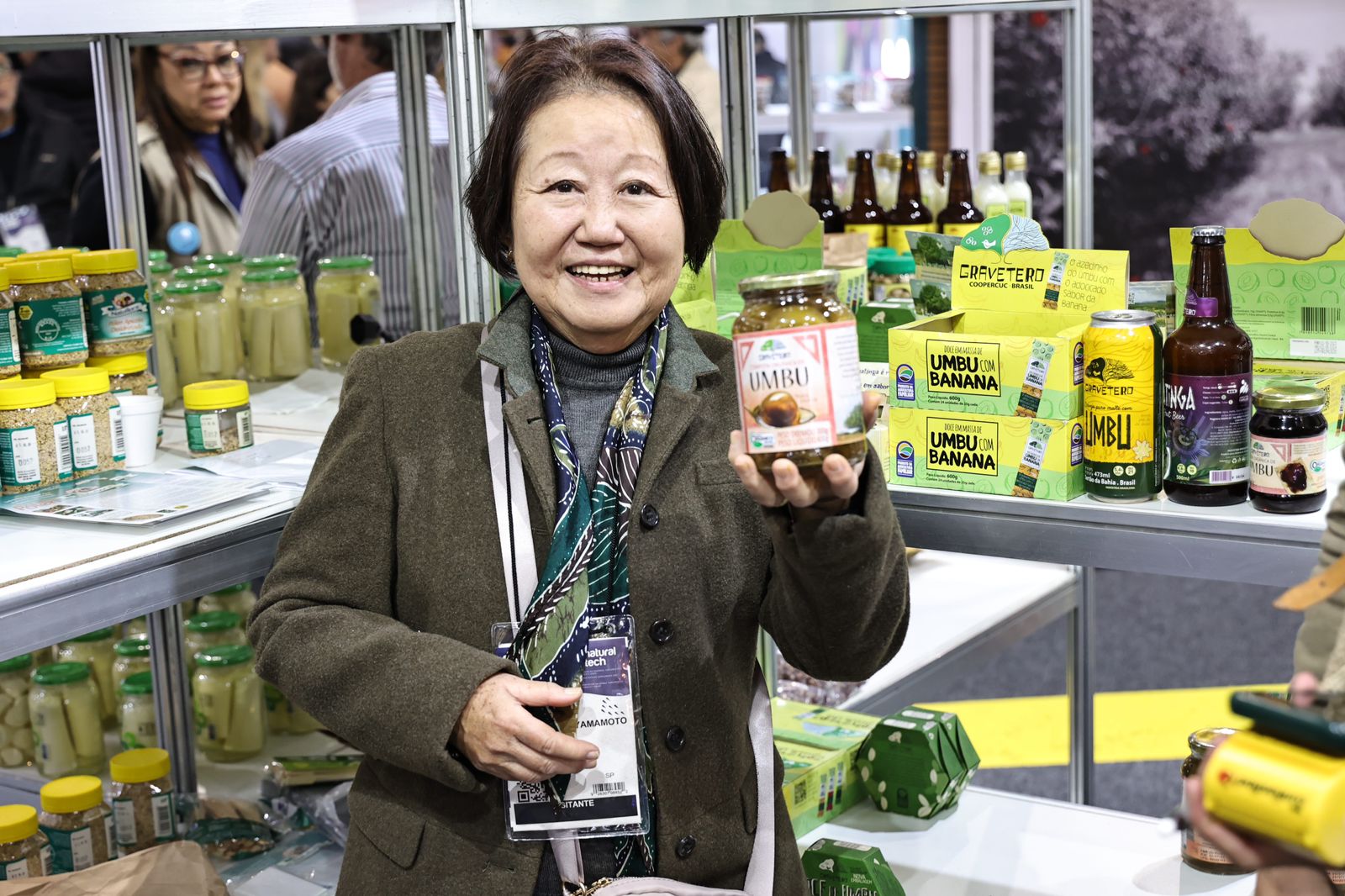 Ana Maria Peres Cardoso, do Sítio Anjo Natural, compartilha sua satisfação em estar presente no evento e ressalta a importância de preservar o conhecimento ancestral e trazer saúde para as novas gerações, unindo o passado com o futuro. "Estou levando açúcar mascavo, mel, nego bom de umbu e toda a alegria que mora na Bahia, porque eu adoro a Bahia e esse aqui é o melhor estande que tem na Naturaltech. Parabenizo o Governo do Estado e a todas as pessoas que ajudam esses agricultores familiares e essas cooperativas a estarem aqui em São Paulo, com esses produtos maravilhosos".