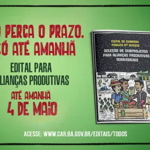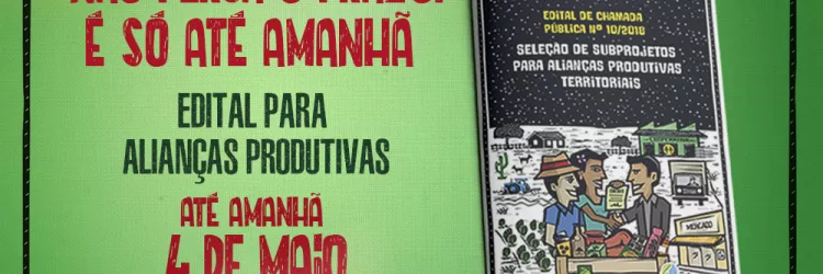 Inscrições para o edital Alianças Produtivas para agricultura familiar terminam nesta sexta-feira (04)