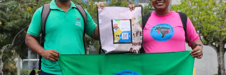 Catadores de materiais recicláveis contam com equipamentos de proteção durante o Carnaval