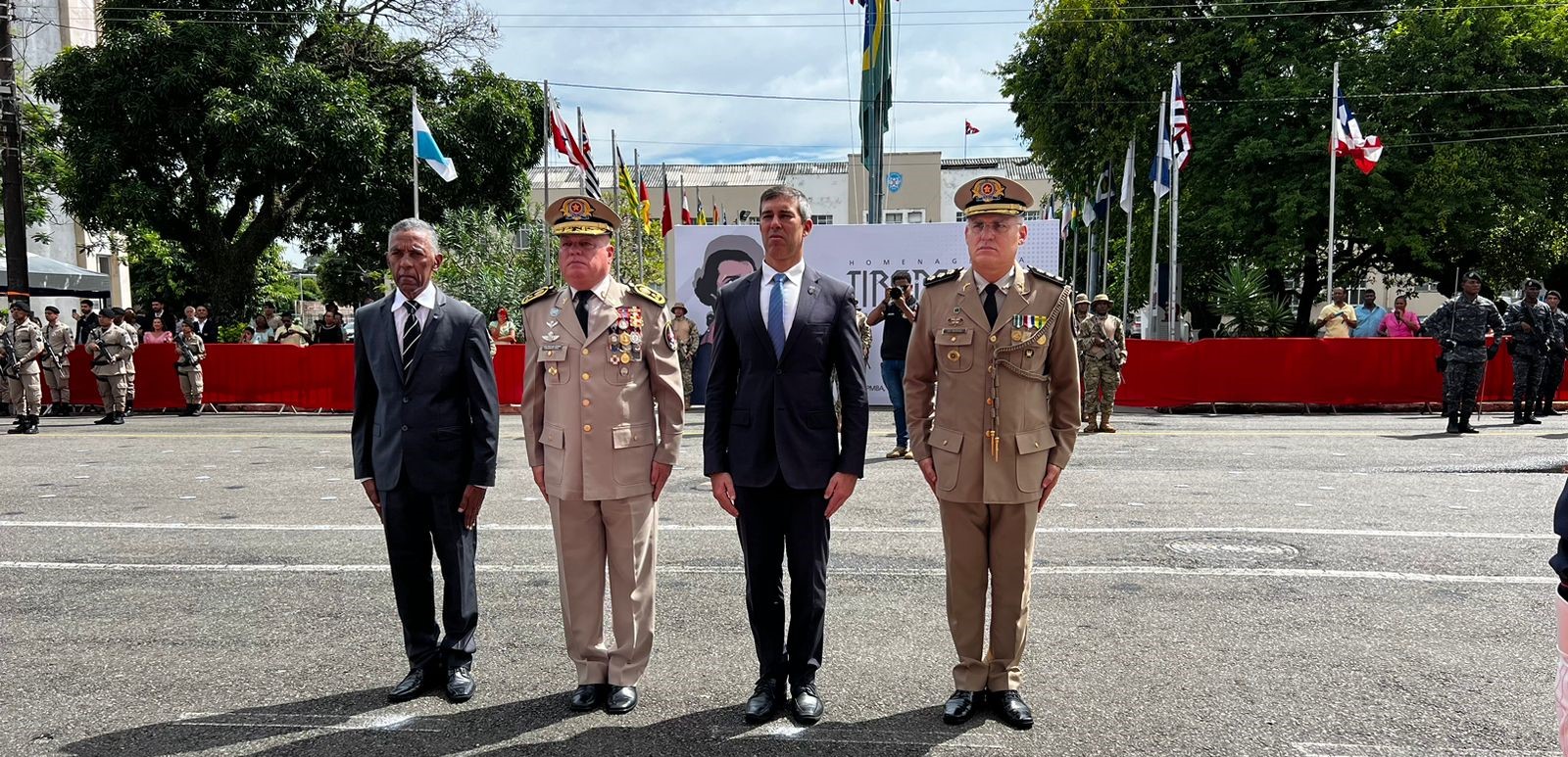 O chefe interino da Casa Militar do Governador, coronel Adalberto Piton, participou da cerimônia em homenagem a Tiradentes, na manhã desta sexta-feira (26), na Vila Policial Militar do Bonfim (VPMB). No evento, oficiais, praças foram agraciados com a medalha por tempo de serviço e as personalidades civis receberam o Título de Amigo da PM. Durante a solenidade, após continência, as principais autoridades presentes depositaram uma coroa de flores no busto de Tiradentes, em homenagem à memória do patrono das Polícias Militares.