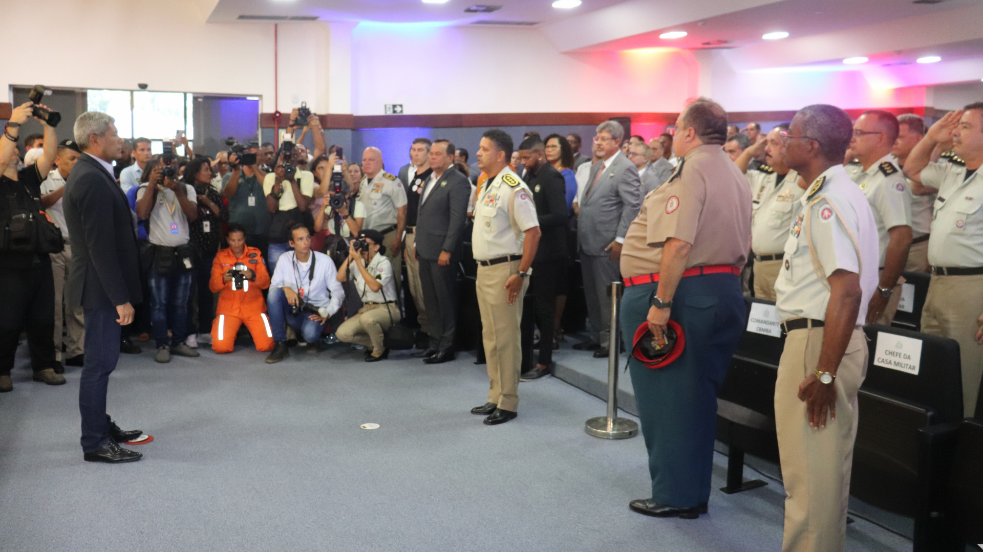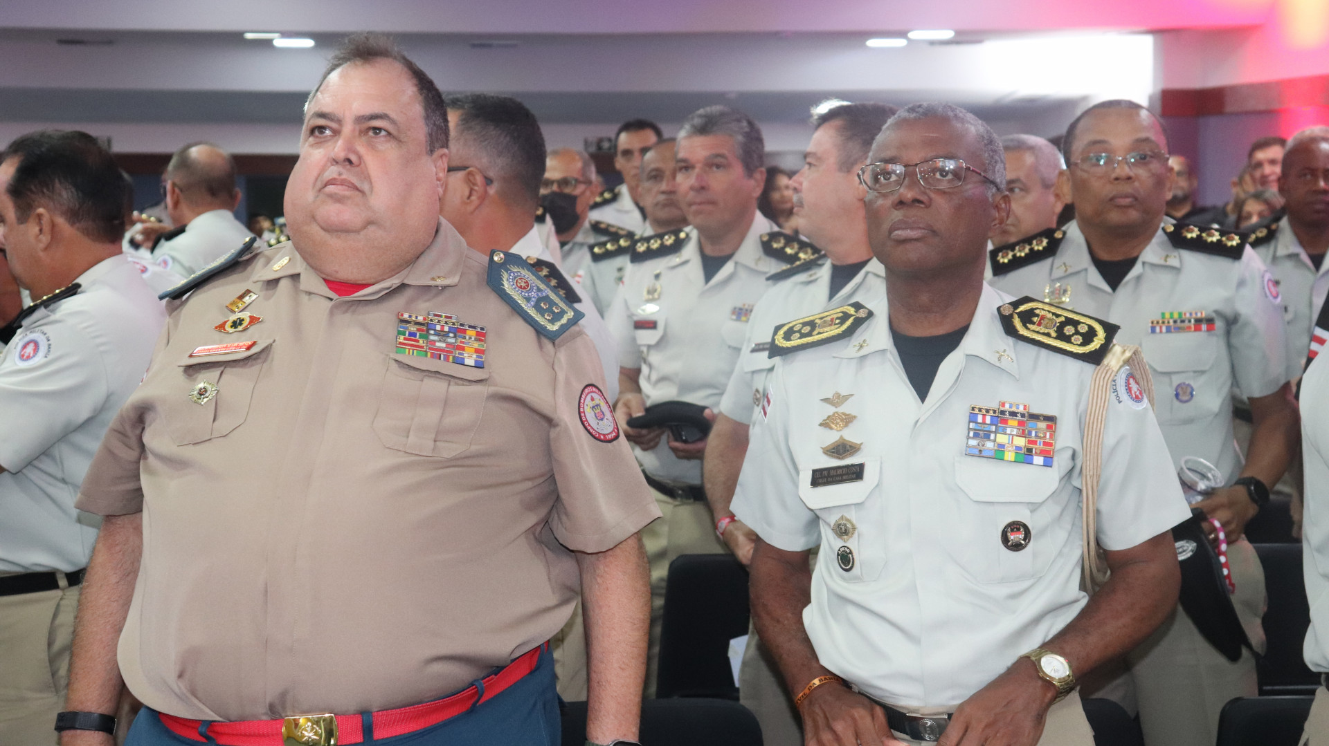 O chefe da Casa Militar do Governador, coronel Mauricio Costa, acompanhou o governador Jerônimo Rodrigues, na divulgação do planejamento da Operação Carnaval da Secretaria da Segurança Pública (SSP), nesta segunda-feira (13), no Batalhão Especializado de Policiamento (Bepe), no Parque de Pituaçu, em Salvador.