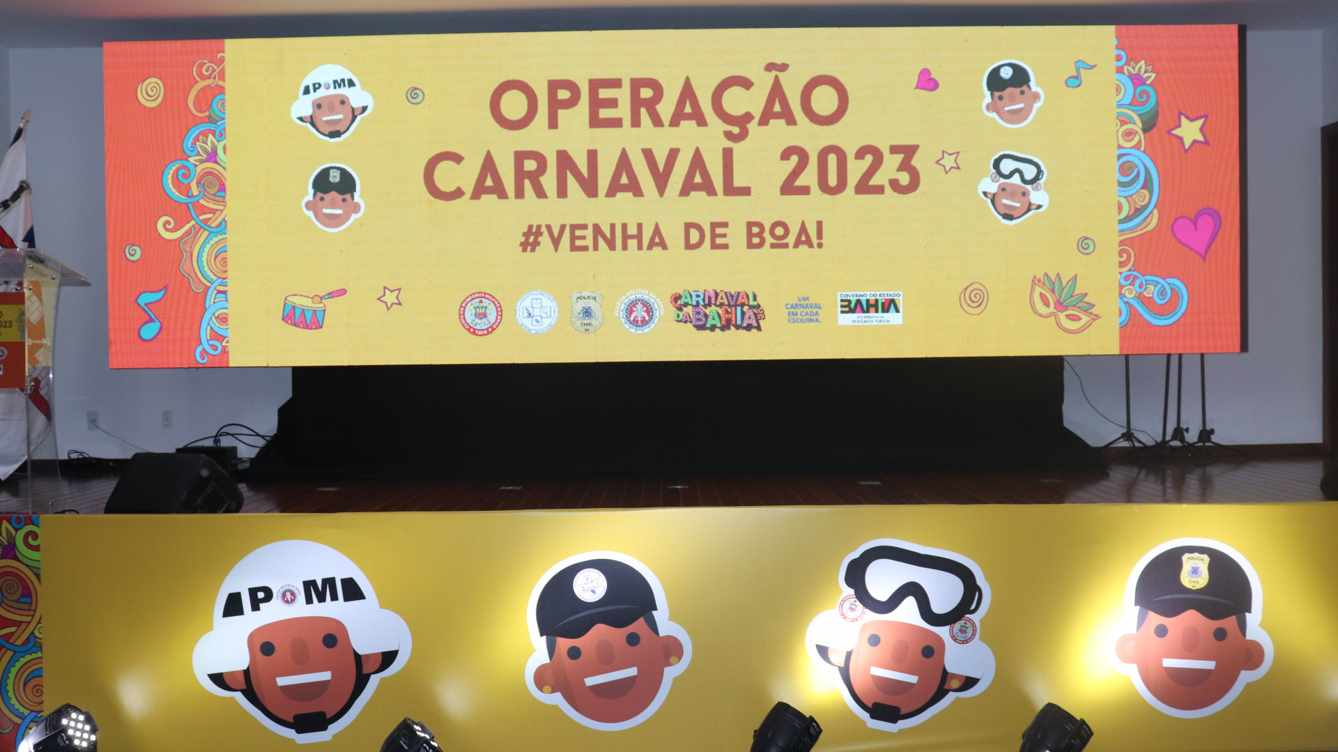 Durante o evento, representantes dos órgãos da SSP apresentaram as ações que serão implementadas no carnaval deste ano. A programação lúdica ficou com a participação do grupo de Teatro e da Banda de Música da Polícia Militar da Bahia.
