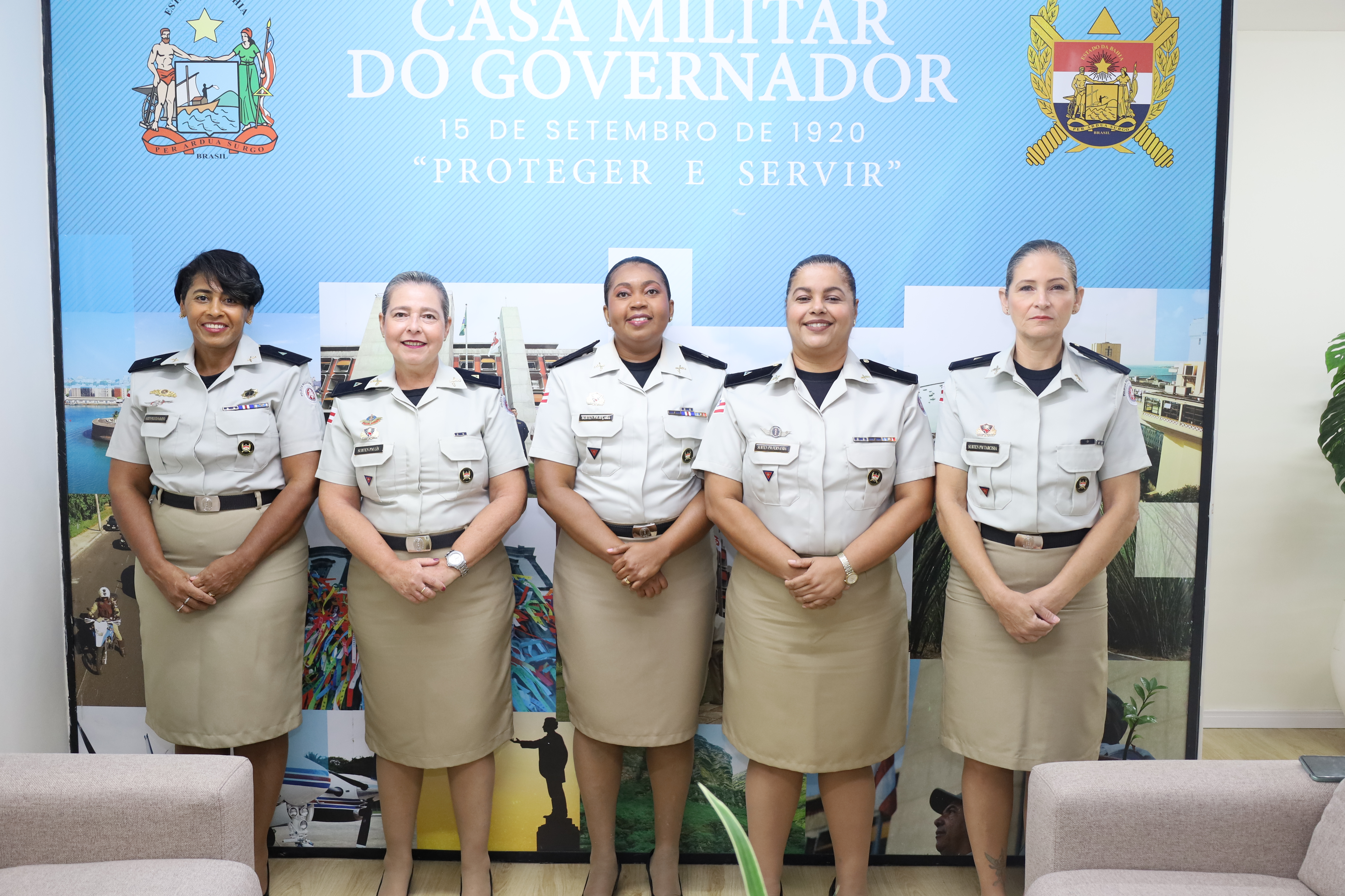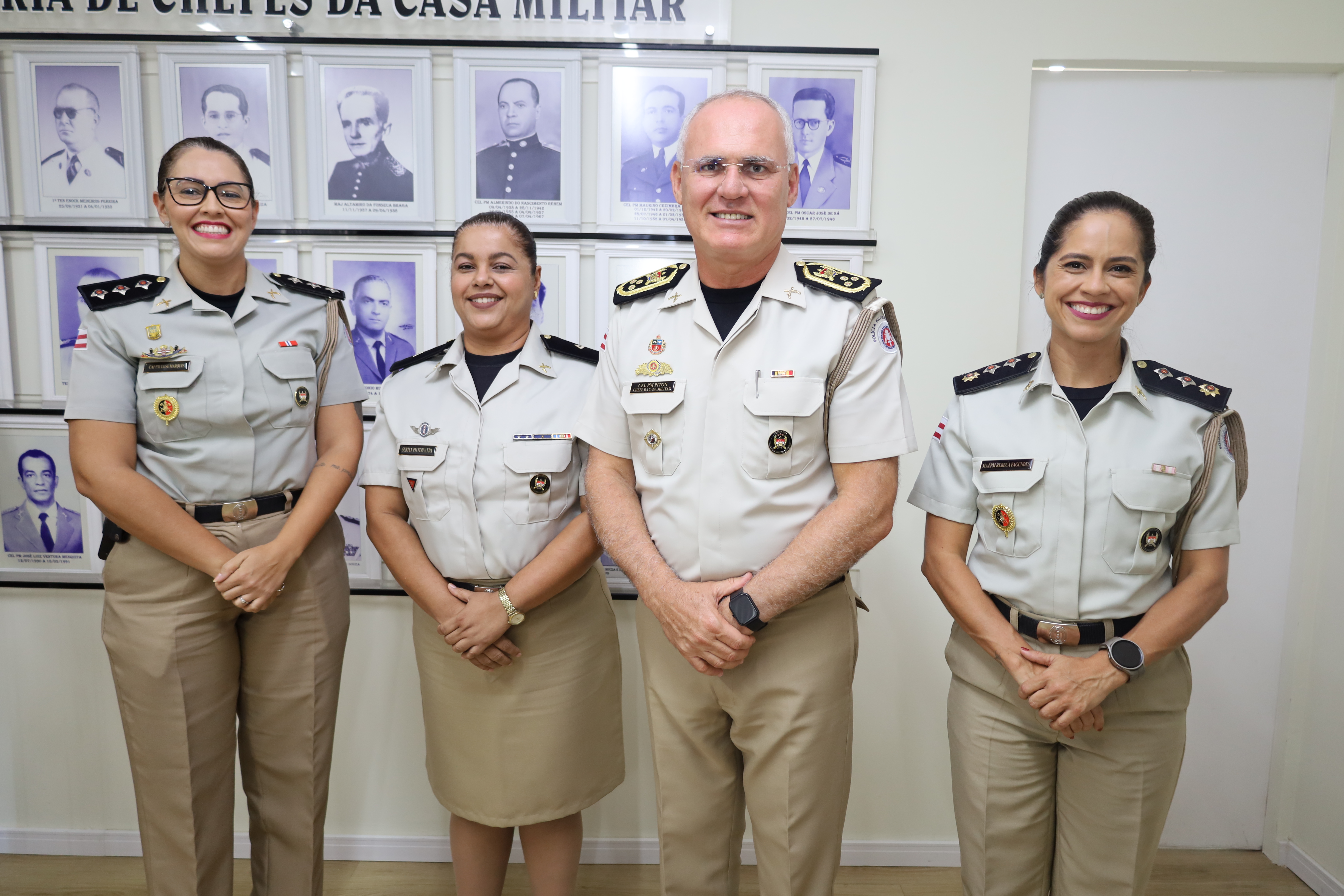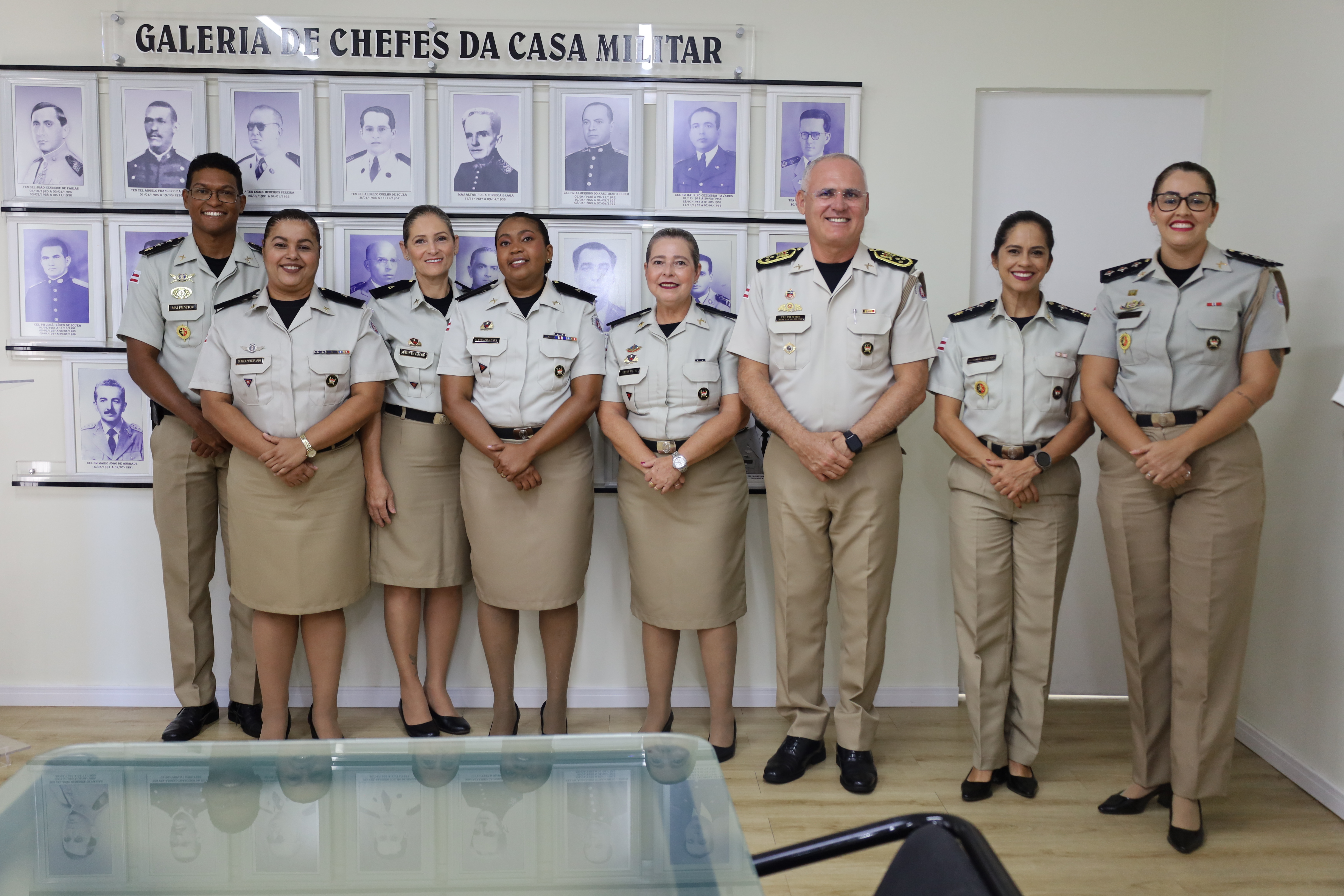 O Chefe da Casa Militar do Governador recepcionou, nesta quarta-feira (19), na sala da Galeria dos Chefes, os novos Subtenentes Luciano, Novais, Sena, Juçara, Alessandra, Luciana, Fernanda, Lis e Tarcísia. Durante o encontro, o Chefe da Casa Militar, coronel Adalberto Piton, enfatizou sua satisfação com a conquista de mais uma graduação na carreira dos integrantes da CMG.
