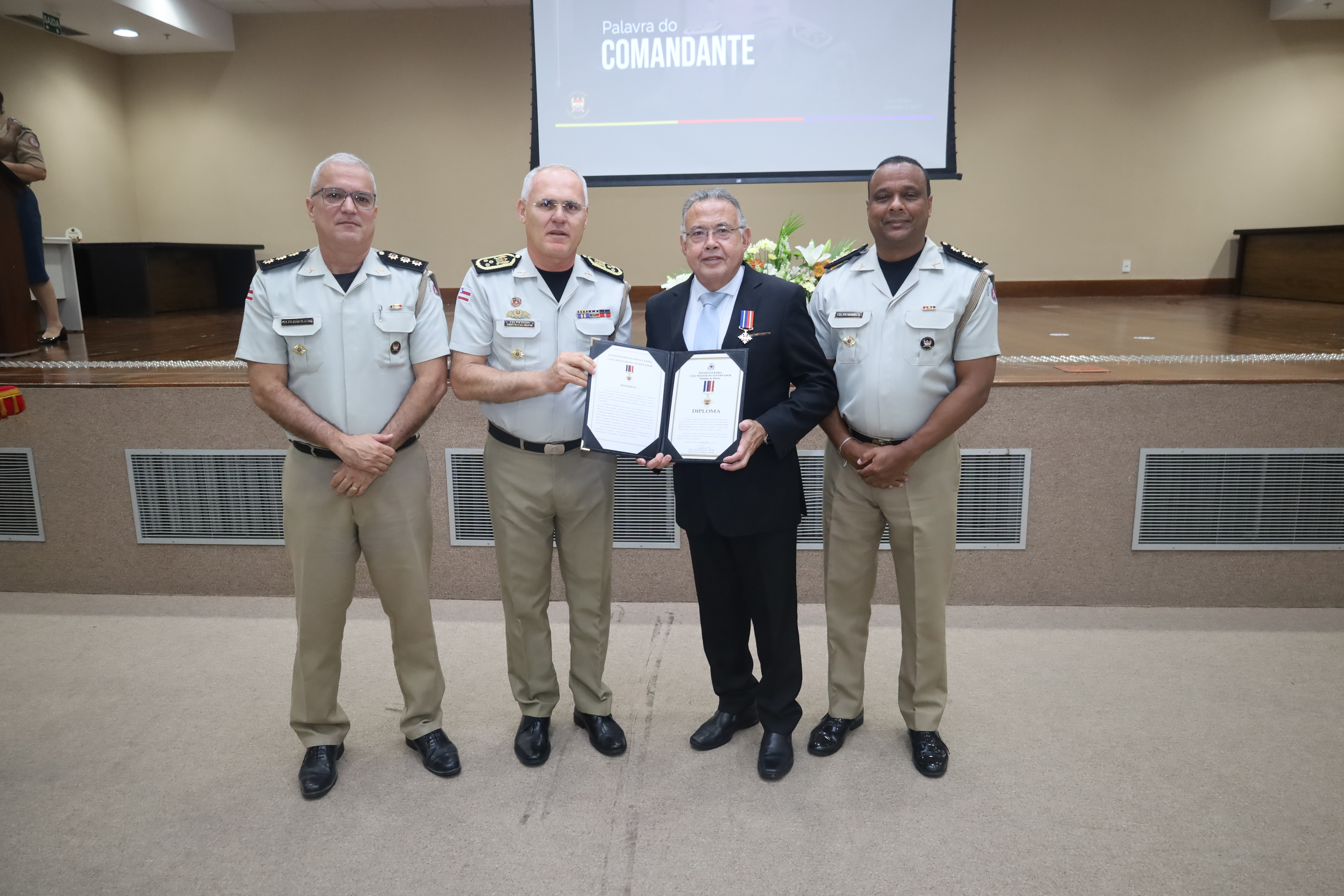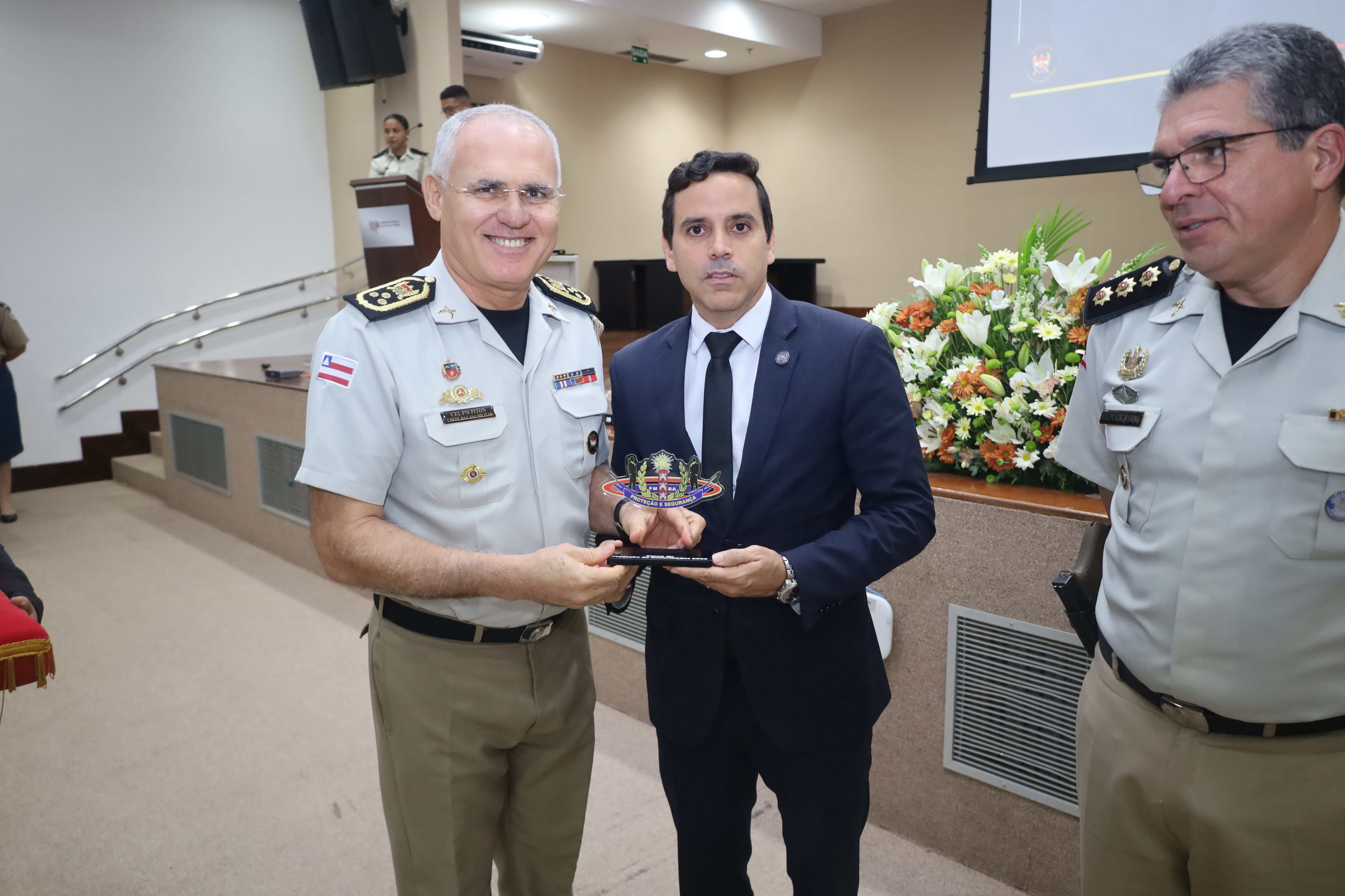 Durante a solenidade, coronel Adalberto Piton, aproveitou a oportunidade para homenagear as autoridades que estavam presentes, entre eles, o chefe da coordenadoria do Ministério Público da Bahia, Gilberto Costa de Amorin, que recebeu a Moeda da CMG e o ex-comandante Geral da PMBA, coronel da Reserva Remunerada, Alfredo Braga de Castro, que foi condecorado com a Medalha de Mérito da Casa Militar do Governador.