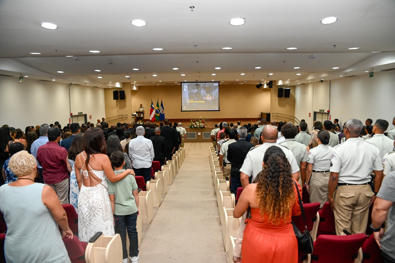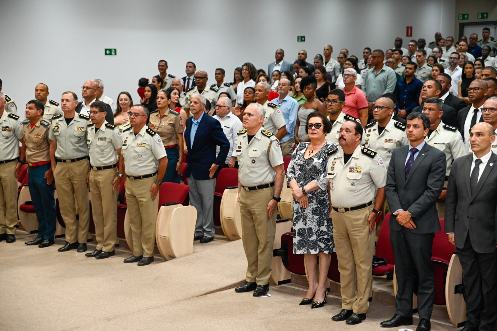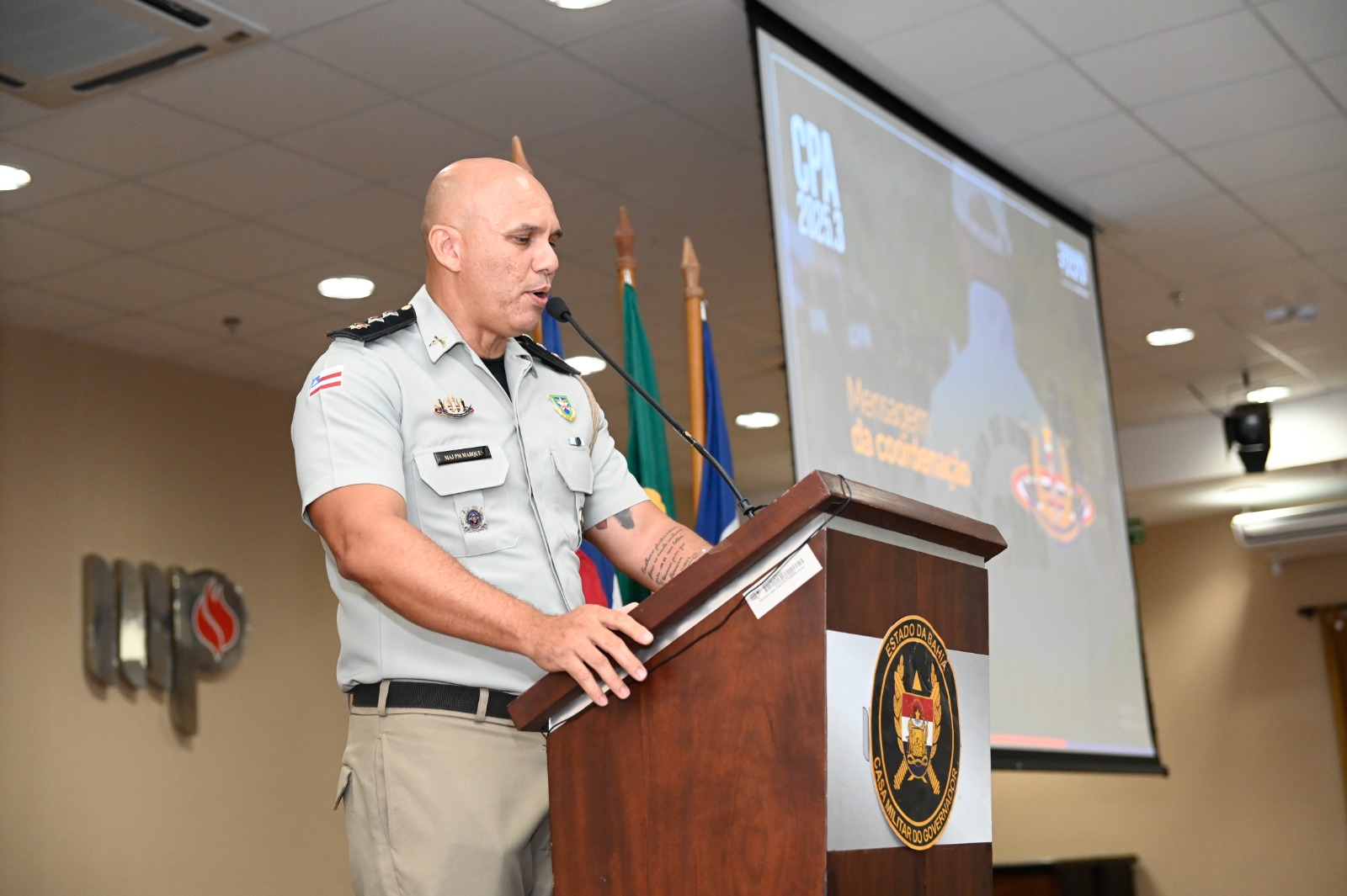 Em seguida, o orador da turma, capitão PM Alex Oliveira, proferiu discurso em nome dos concluintes, destacando os desafios enfrentados, o aprendizado adquirido e a importância da integração entre profissionais de diferentes instituições para o fortalecimento da segurança pública.