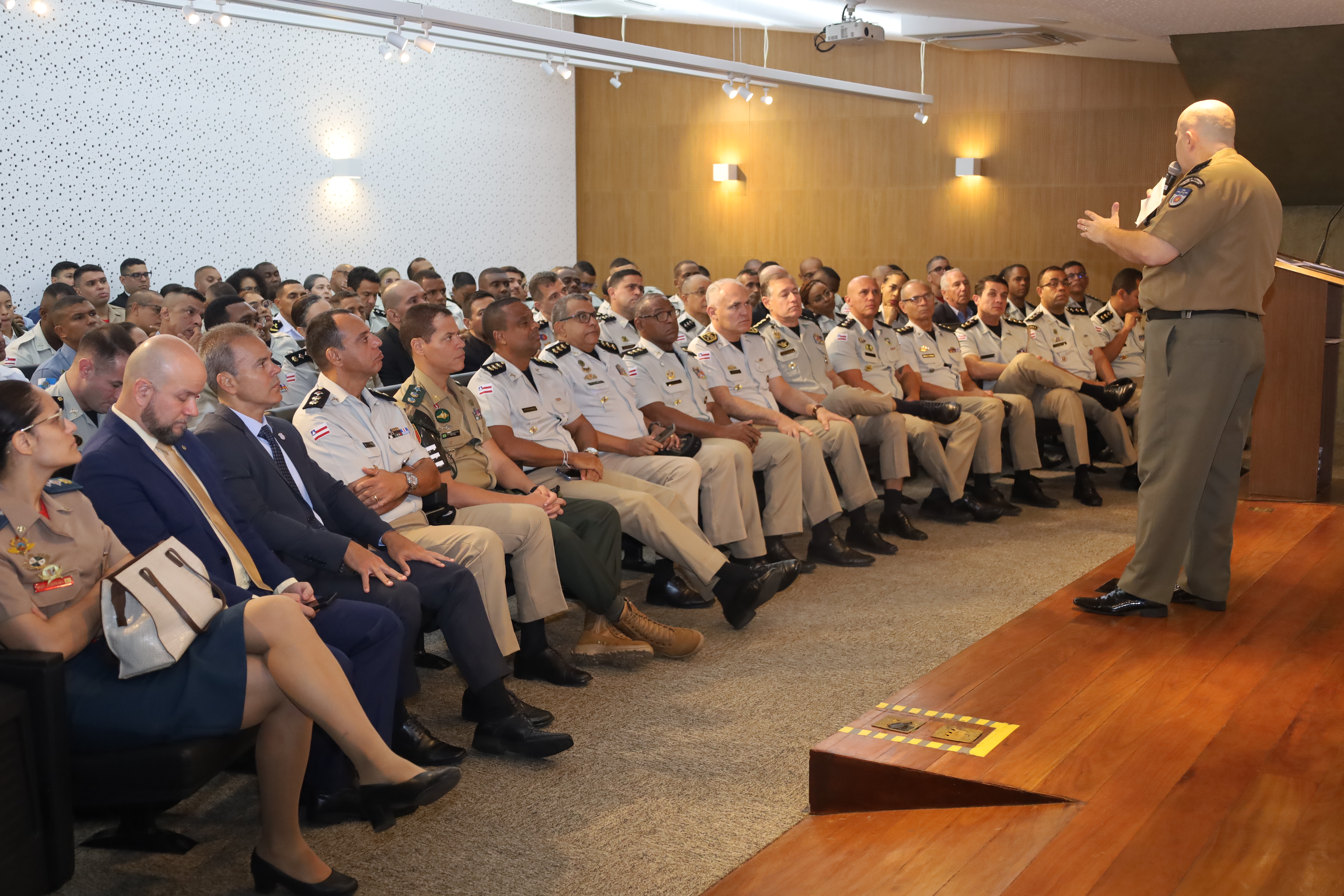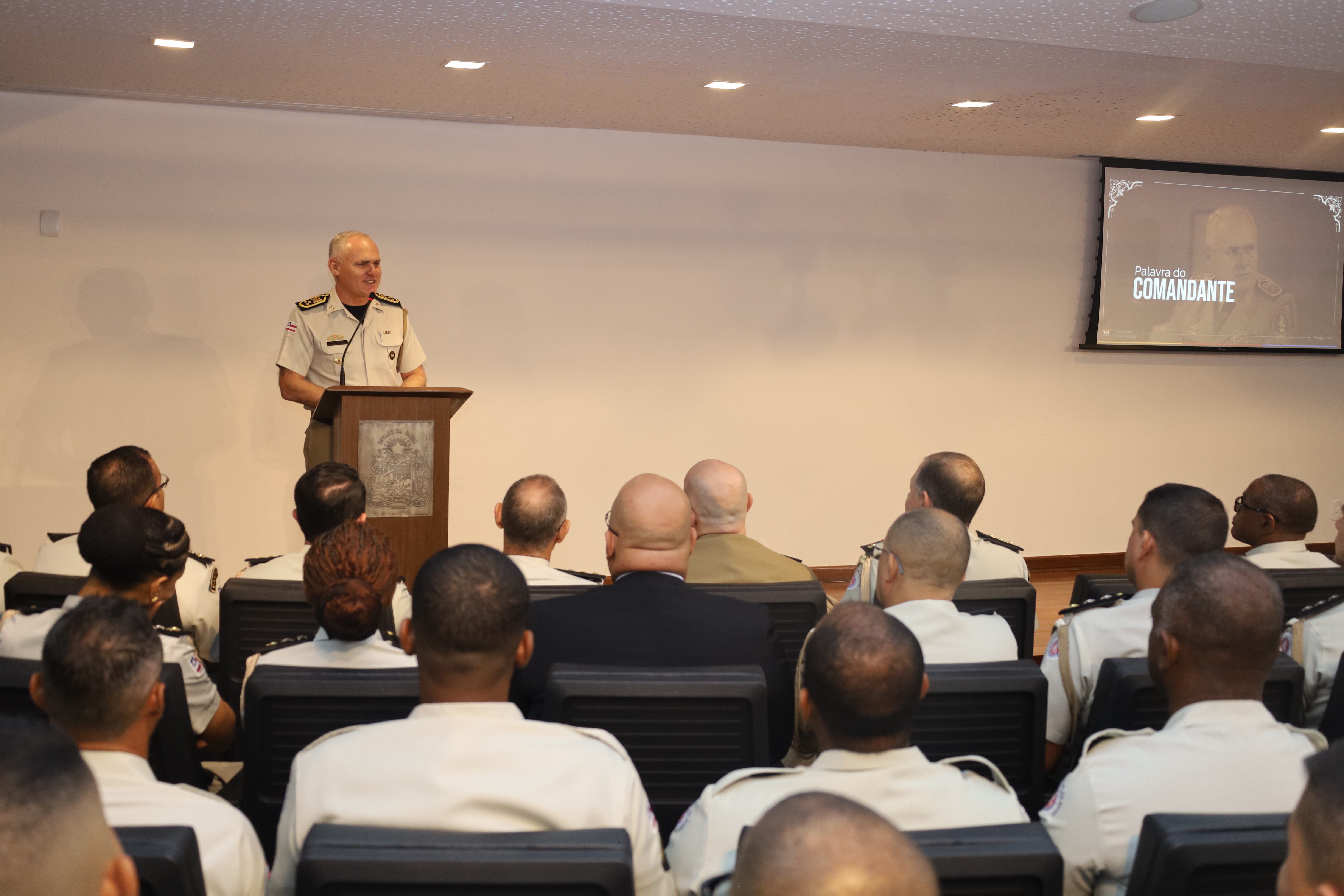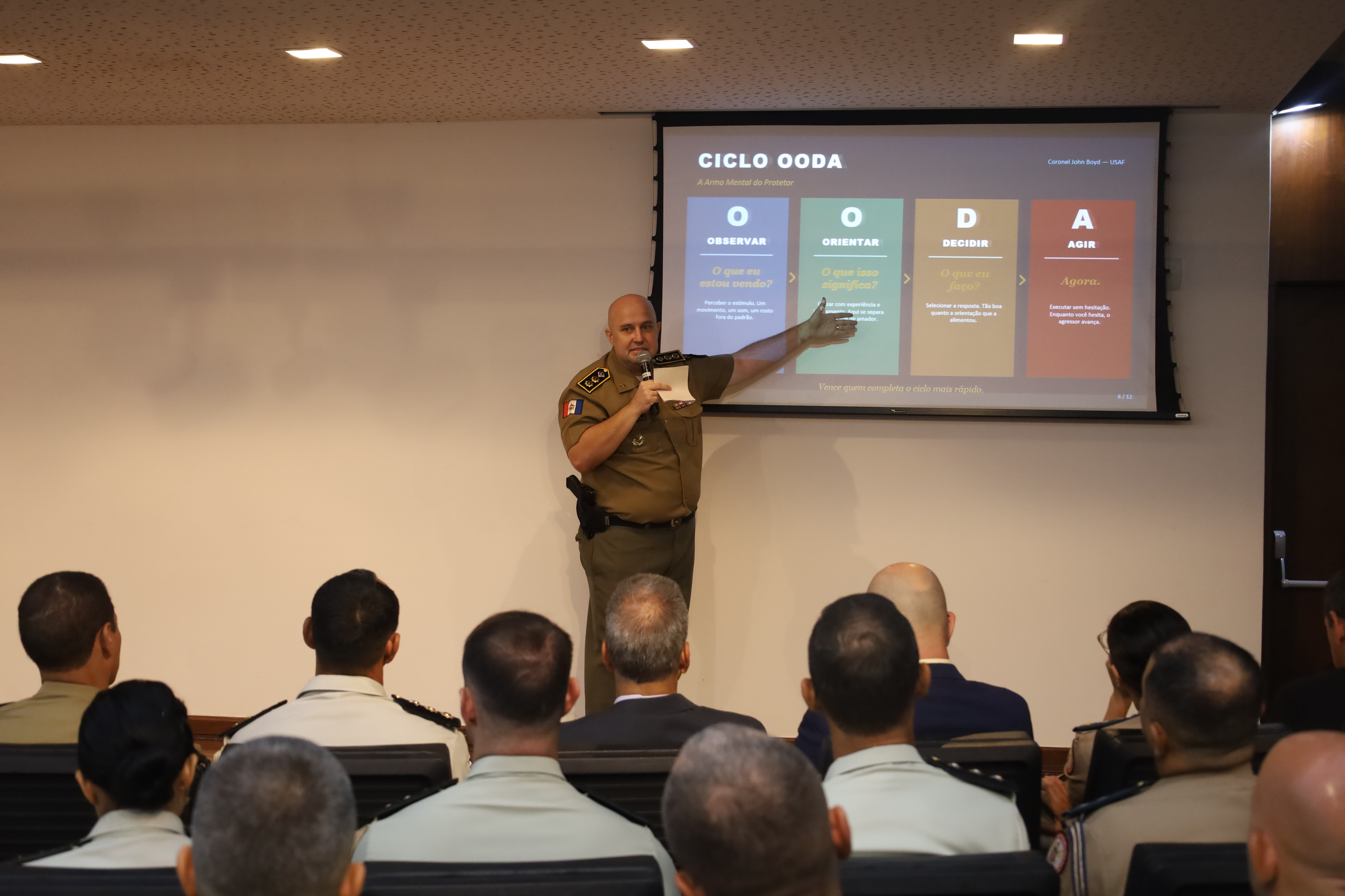 Ao final da solenidade, o chefe da Casa Militar do Governador, coronel Adalberto Piton, agradeceu ao palestrante e ressaltou a importância e o reconhecimento do curso para as coirmãs e desejou uma boa jornada aos participantes do CPA.