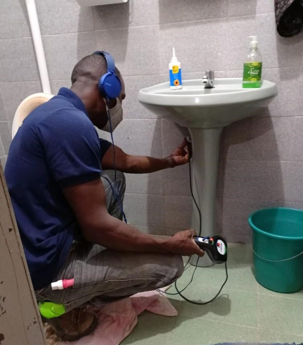 O encarregado de manutenção e instalador hidráulico Beneílton Bonfim, no mercado desde 2007, está a postos quando a opção do síndico é contratação direta de um profissional. Com geofone digital, manômetro, trenas e outras ferramentas necessárias, ele analisa em qual coluna (ou linha se distribuição) das torres pode estar o vazamento. "Depois, o síndico faz a comunicação aos moradores da necessidade de vistoria nos imóveis e eu bato de porta em porta para localizar em qual unidade o vazamento se encontra", explica.