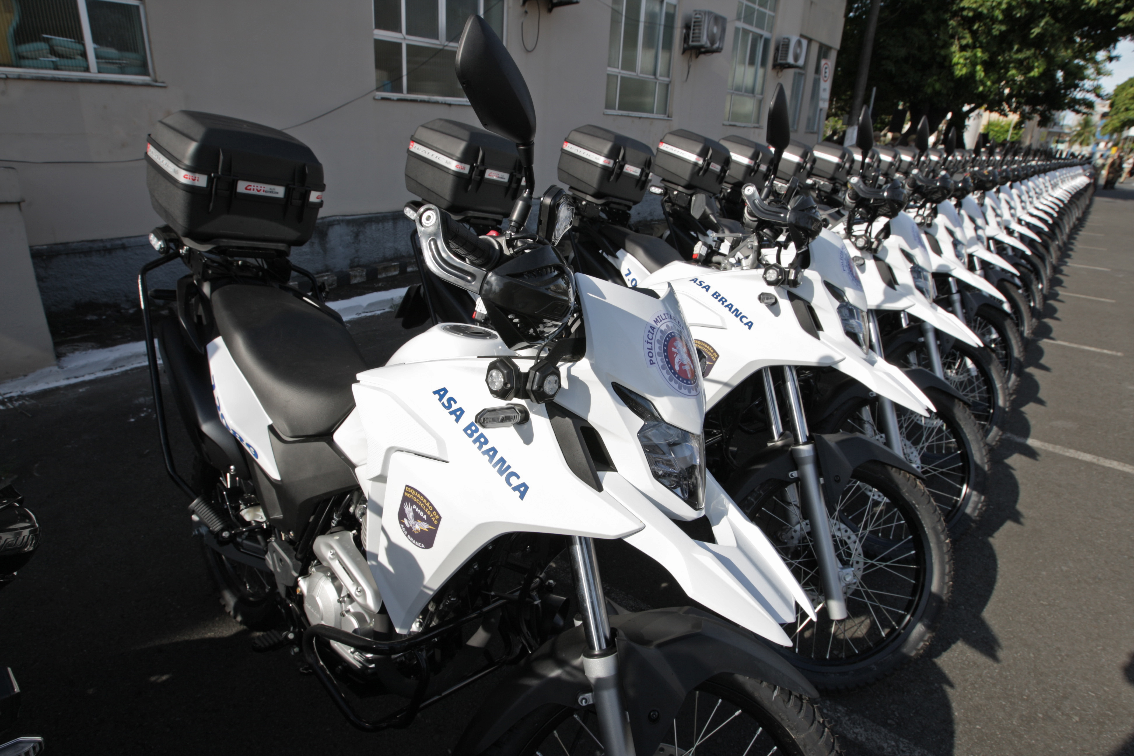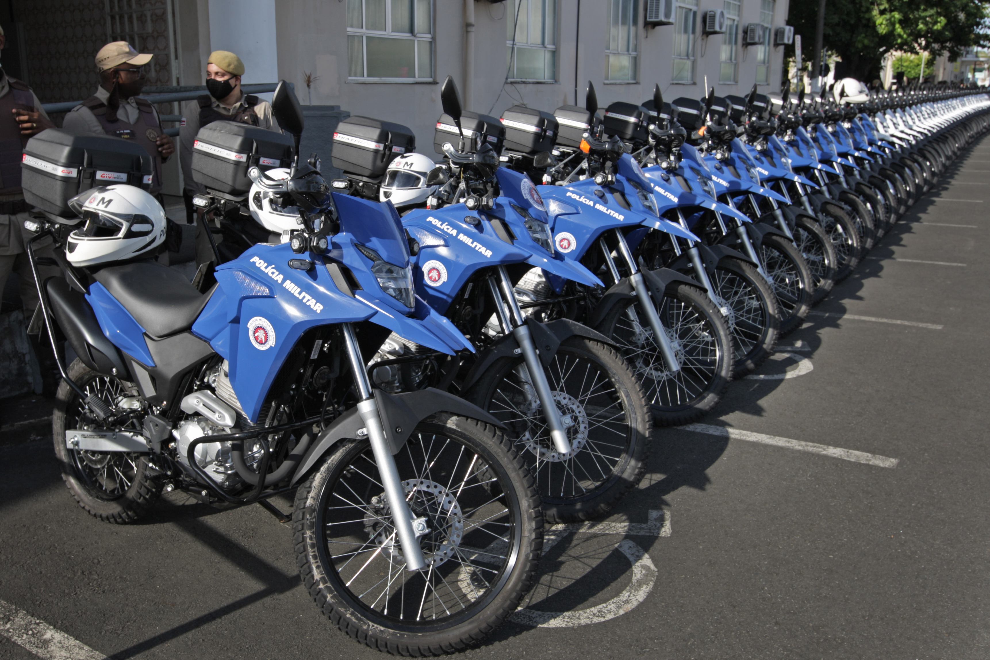 Ao completar 197 anos, a Polícia Militar da Bahia (PMBA) recebeu mais 150 motocicletas e 27 viaturas para reforçar a segurança pública no estado. Os 177 veículos foram entregues pelo governador Rui Costa, nesta quinta-feira (17), em solenidade na Vila Policial Militar do Bonfim, em Salvador.