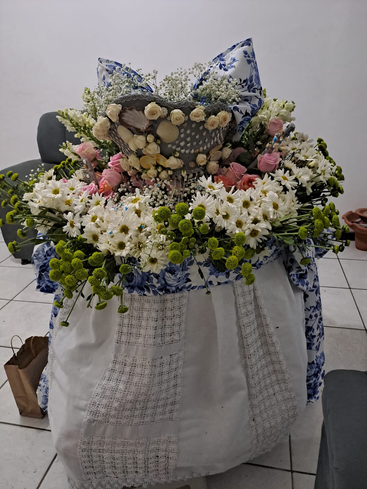 No conteúdo do balaio, apenas produtos sustentáveis e biodegradáveis como alimentos sagrados e flores. Apetrechos como sabonetes tiveram suas embalagens removidas, e o perfume foi jogado sobre o cesto.