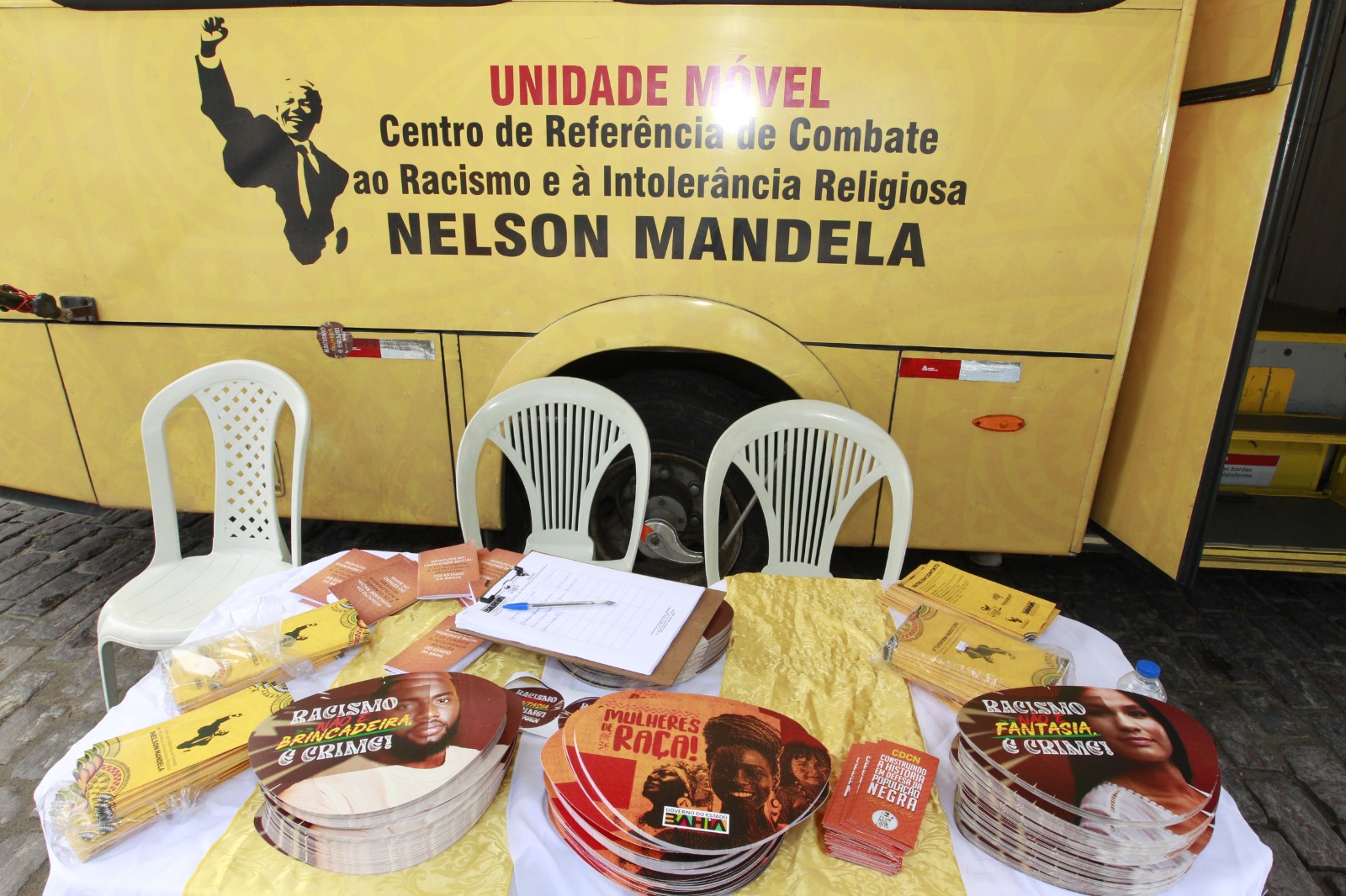 Durante o evento nesta quarta (14), a unidade móvel do Centro de Referência de Combate ao Racismo e à Intolerância Religiosa Nelson Mandela, vinculado à Secretaria estadual de Promoção da Igualdade Racial (Sepromi), ficou estacionada na Praça da Purificação e prestou atendimento psicológico, social e jurídico a vítimas de racismo e intolerância religiosa. Outra unidade móvel, da Secretaria Estadual de Políticas para as Mulheres (SPM), ofereceu atendimento e orientou a população no enfrentamento à violência contra o público feminino.