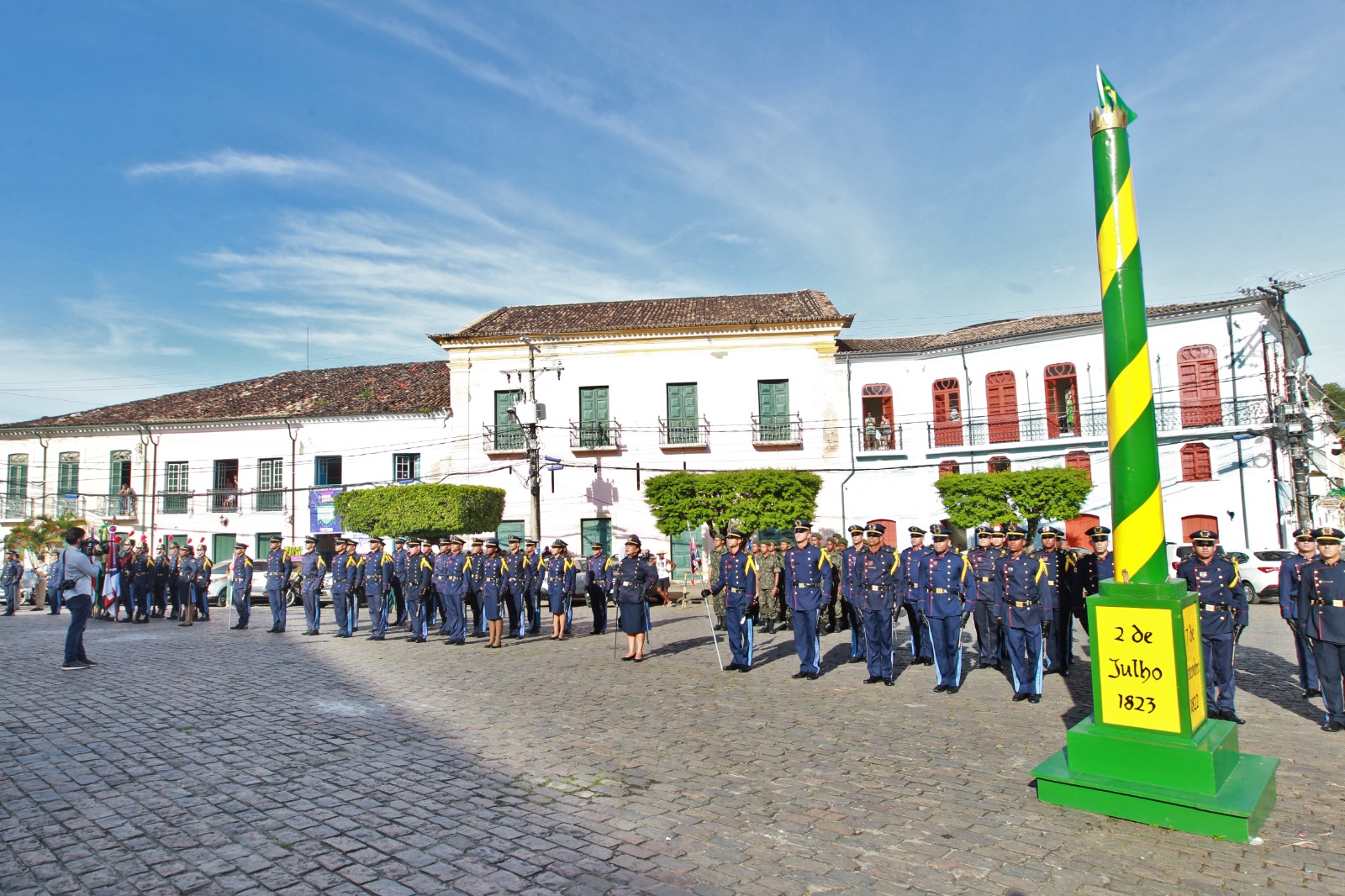 O tiro da alvorada, no porto de Cachoeira, marcou o início da solenidade de transferência simbólica da sede do Governo do Estado para a cidade pelo Bicentenário da Independência do Brasil na Bahia. O evento começou às 6h deste domingo (25), com a participação do governador Jerônimo Rodrigues, que participou dos atos que dão destaque à história de luta e resistência no estado e que teve Cachoeira como uma das protagonistas.