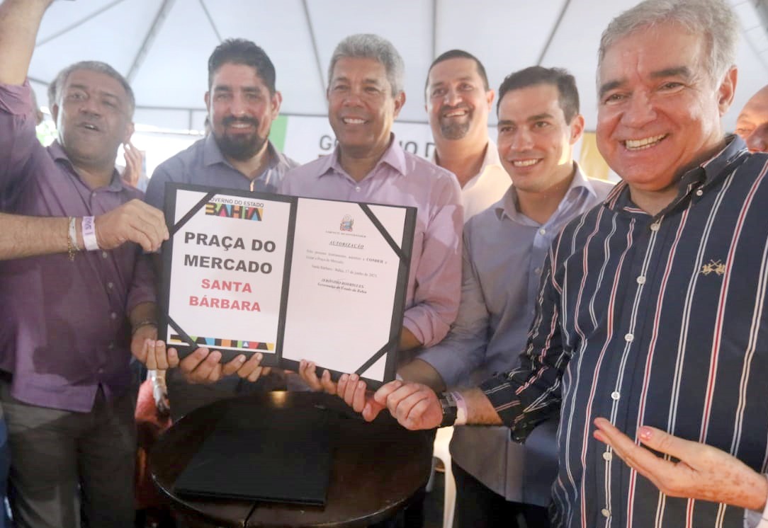Após cumprir agenda na cidade de Serrinha, o governador Jerônimo Rodrigues seguiu para a vizinha Santa Bárbara, também no nordeste do estado, onde inaugurou as obras de recuperação e ampliação do Mercado Municipal. O investimento de R$ 1,2 milhão foi realizado através da Companhia de Desenvolvimento e Ação Regional (CAR), órgão vinculado à Secretaria de Desenvolvimento Rural (SDR). A nova estrutura é mais moderna e proporciona melhores condições de trabalho aos feirantes, garantindo a disposição adequada dos produtos.