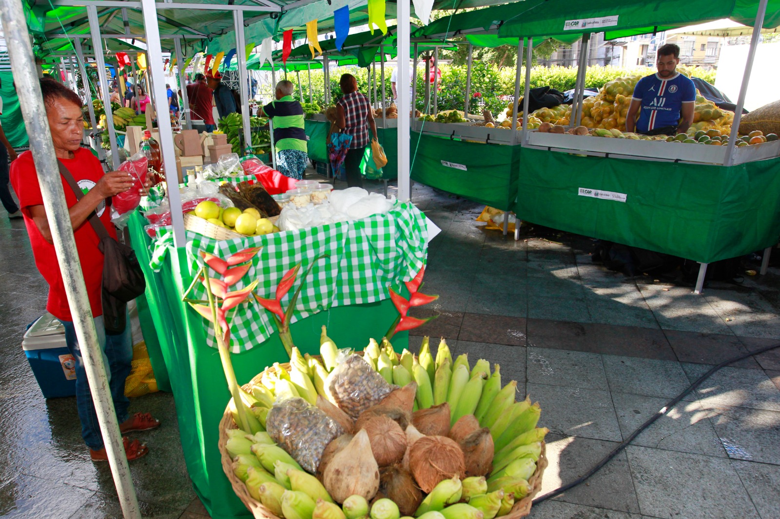 O evento é aberto ao público e acontece até sábado (17). Além de frutas e verduras, quem visita o espaço encontra café, chocolate, cocadas, mel de cacau, compotas de doces, pimenta, produtos juninos, comida regional, entre outros.
