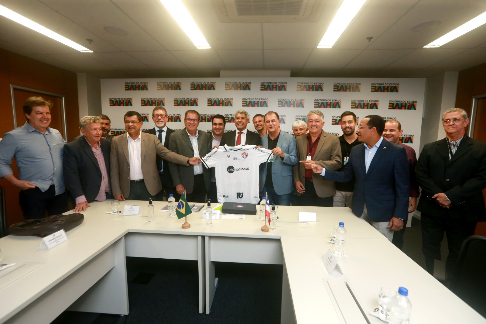O governador Jerônimo Rodrigues se reuniu, nesta segunda-feira (19), com o presidente do EC Vitória, Fábio Mota, o presidente da Conder, José Trindade, e outros representantes do time e do Estado para conversar sobre a duplicação do sistema viário da rua Artêmio Valente, que vai até a avenida Mário Sérgio. Durante a reunião, foi apresentado estudo desenvolvido na área de intervenção e propostas que devem melhorar a mobilidade, tanto para o acesso ao estádio quanto para a população que trafega na região. Até o mês de julho, será aberta licitação para início das obras, que devem ser entregues até 2024.